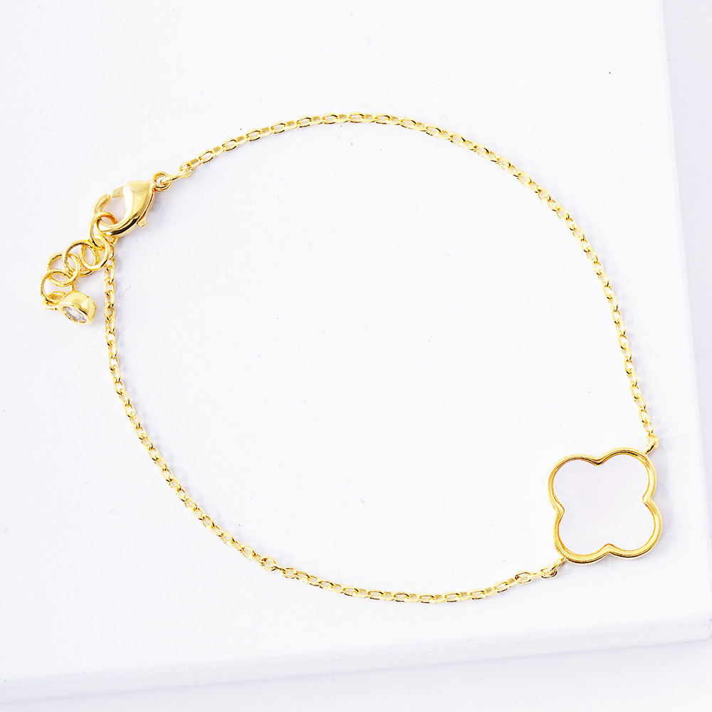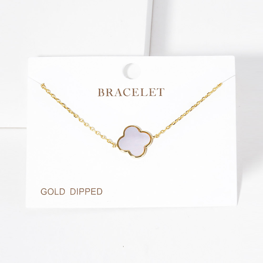 Gold Dipped Mother of Pearl Quatrefoil Charm Bracelet