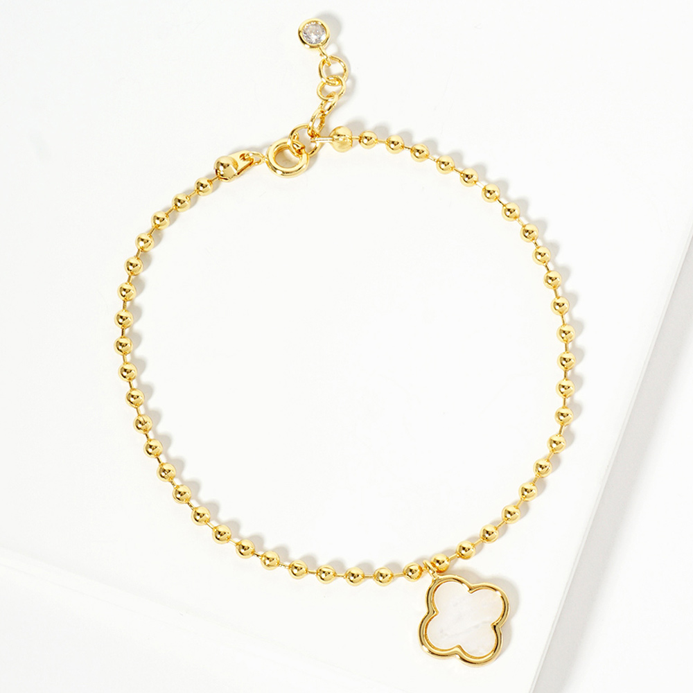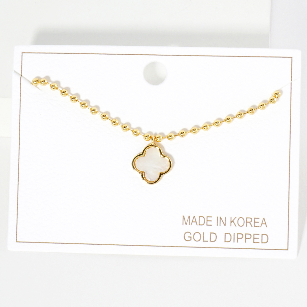Gold Dipped Mother Of Pearl Quatrefoil Charm Bubble Chain Bracelet