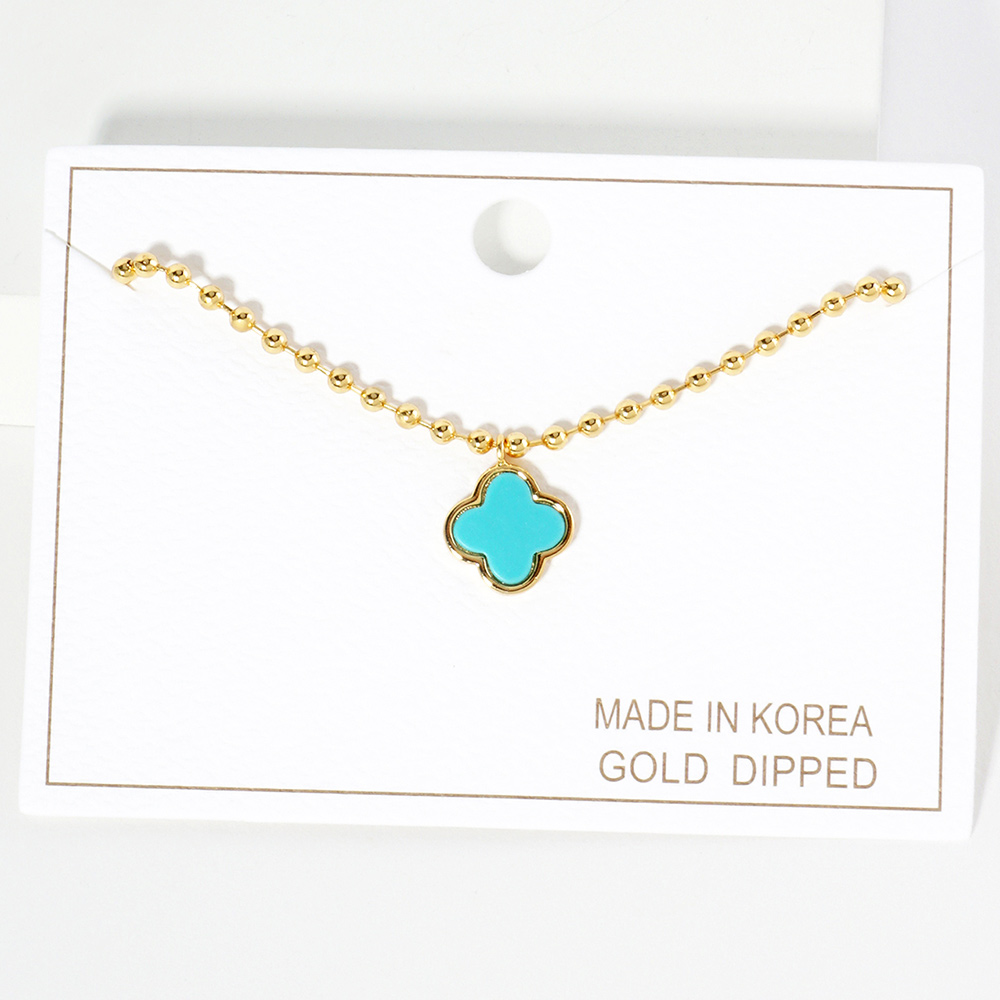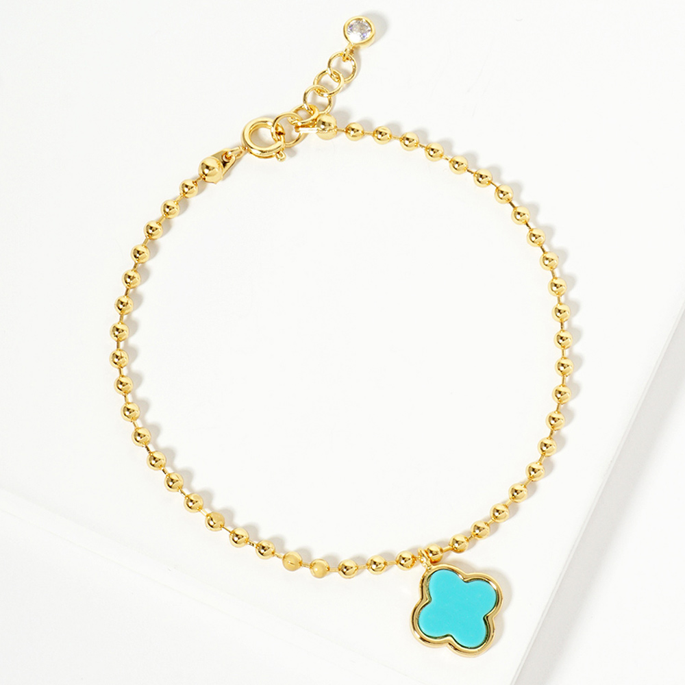 Gold Dipped Natural Stone Quatrefoil Charm Bubble Chain Bracelet