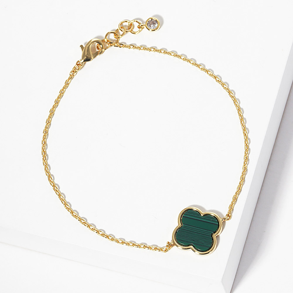 Gold Dipped Mother of Pearl Quatrefoil Charm Bracelet