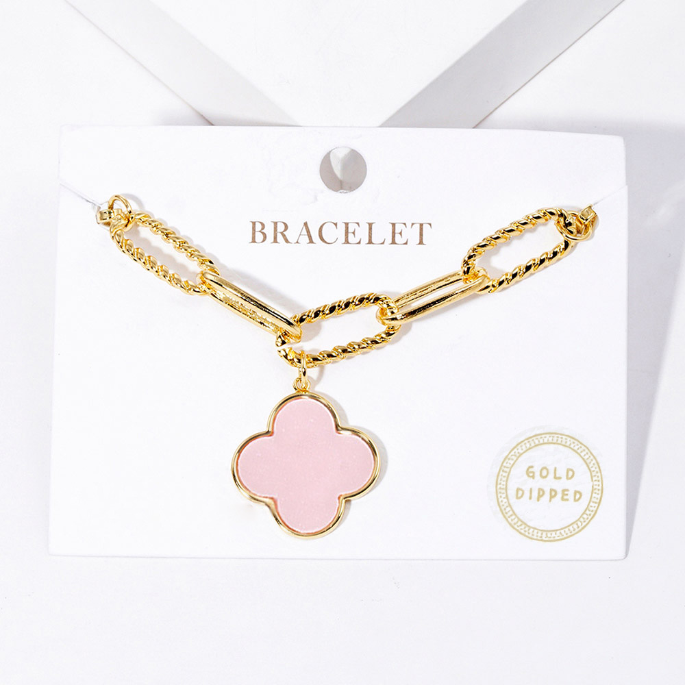 Gold Dipped Mother of Pearl Quatrefoil Charm Bracelet
