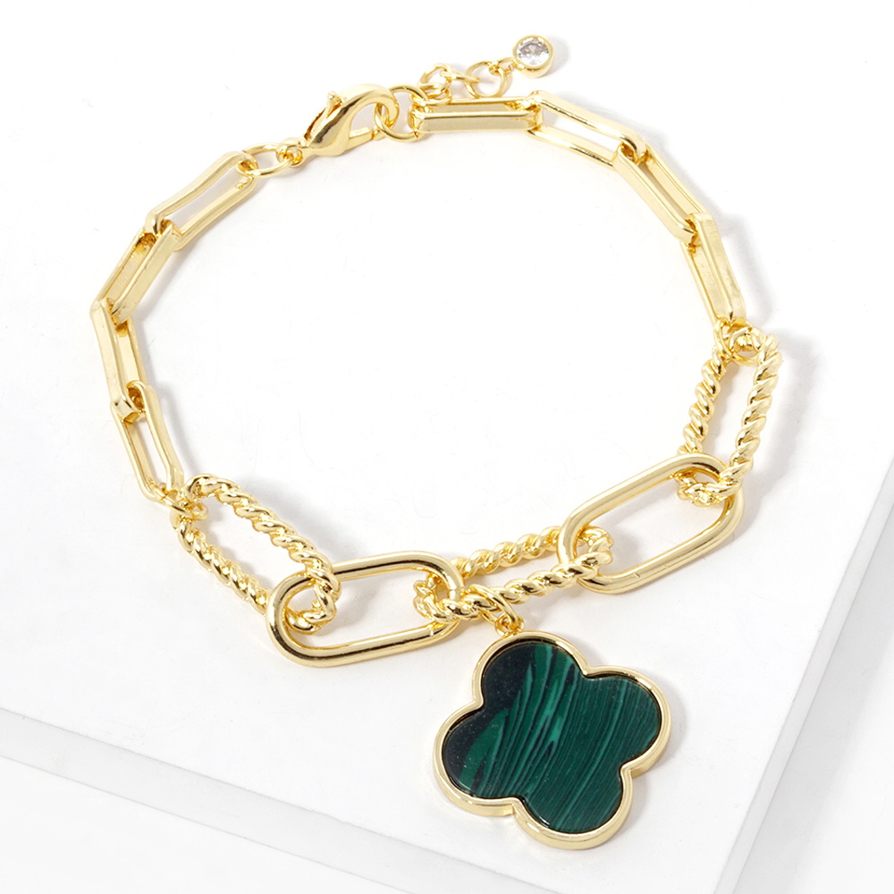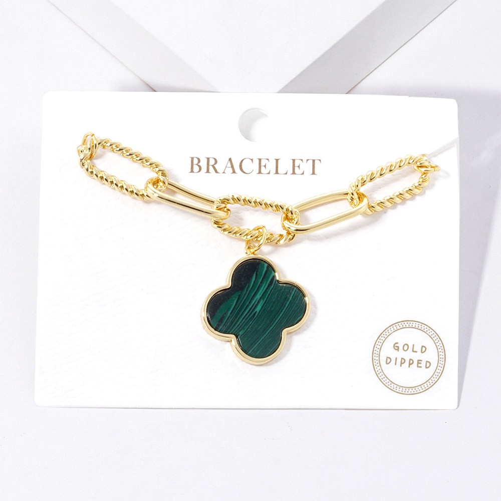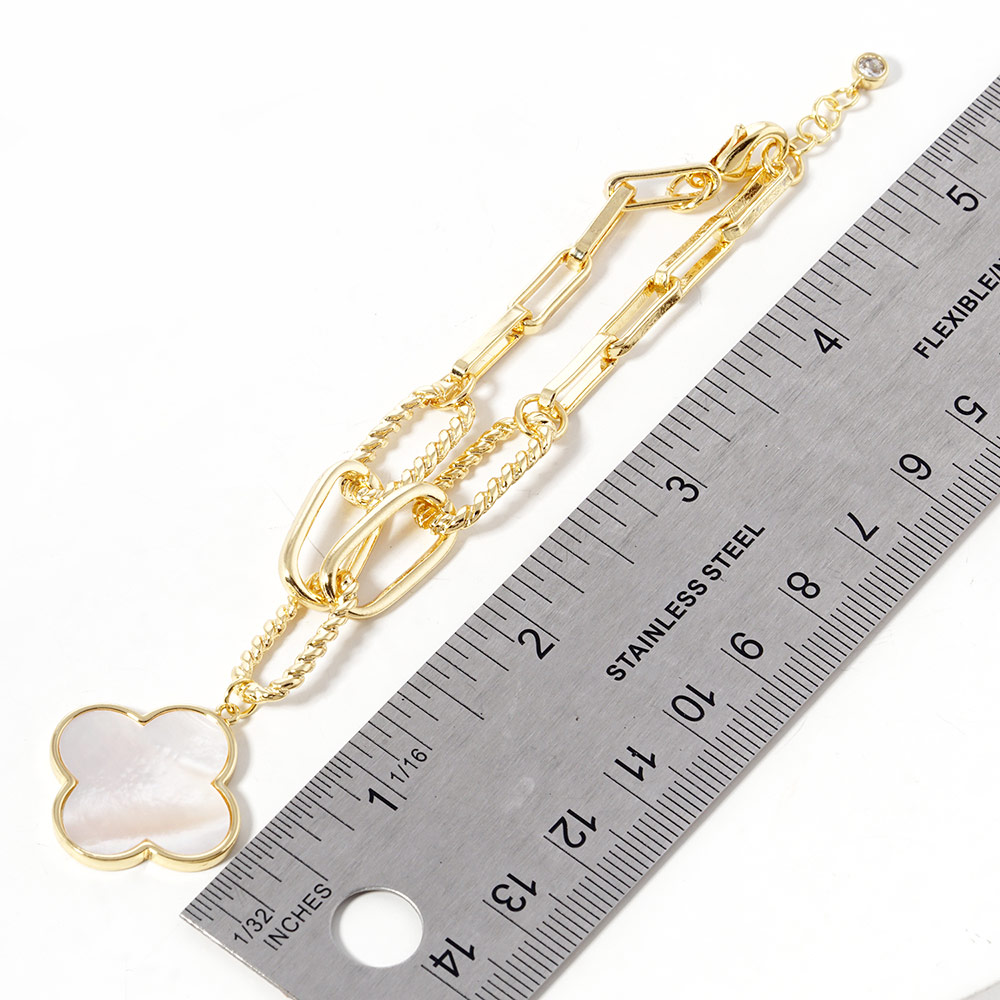 Gold Dipped Mother of Pearl Quatrefoil Charm Bracelet