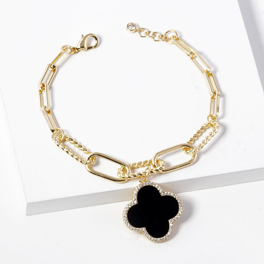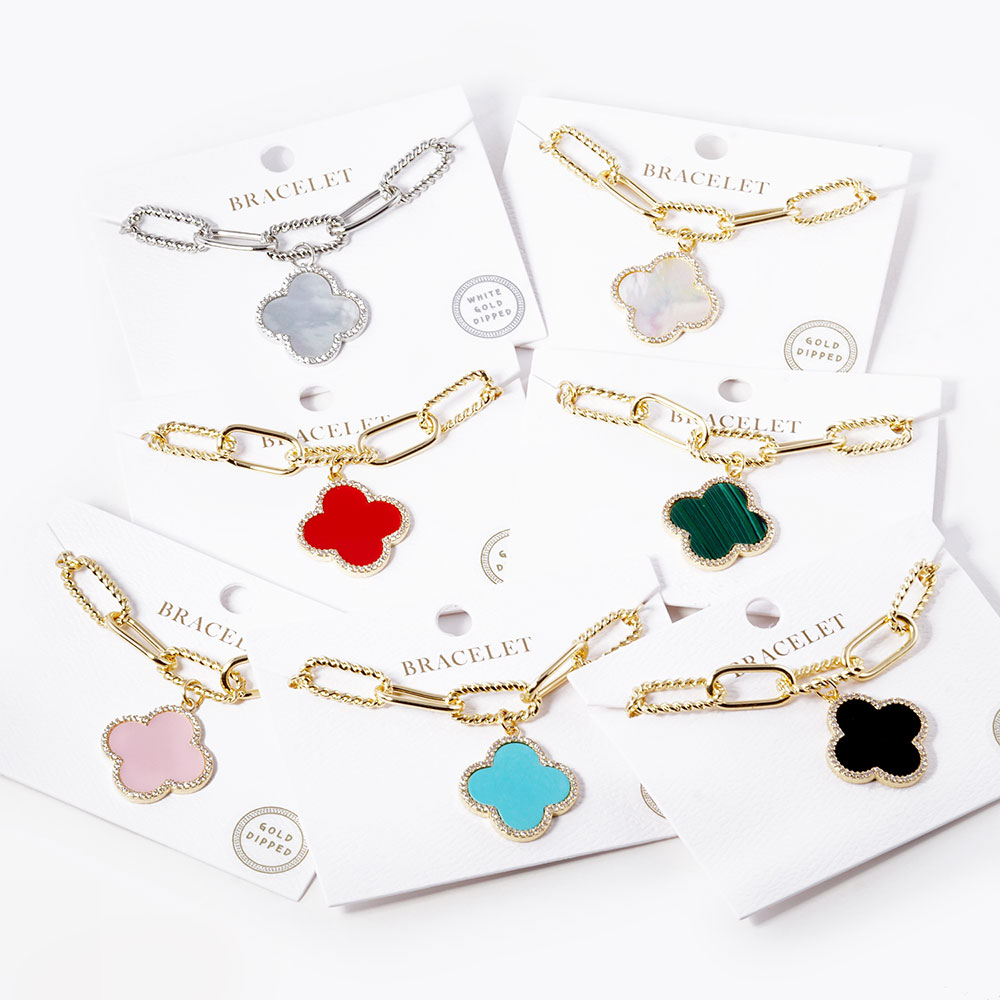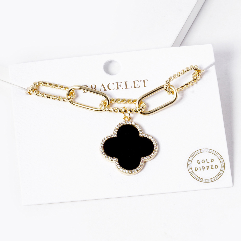 Gold Dipped Quatrefoil Charm Paperclip Bracelet