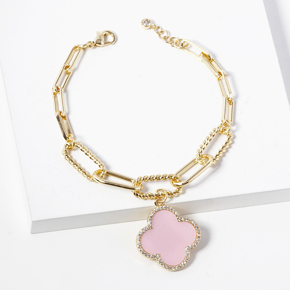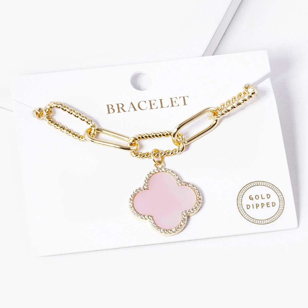 Gold Dipped Quatrefoil Charm Paperclip Bracelet