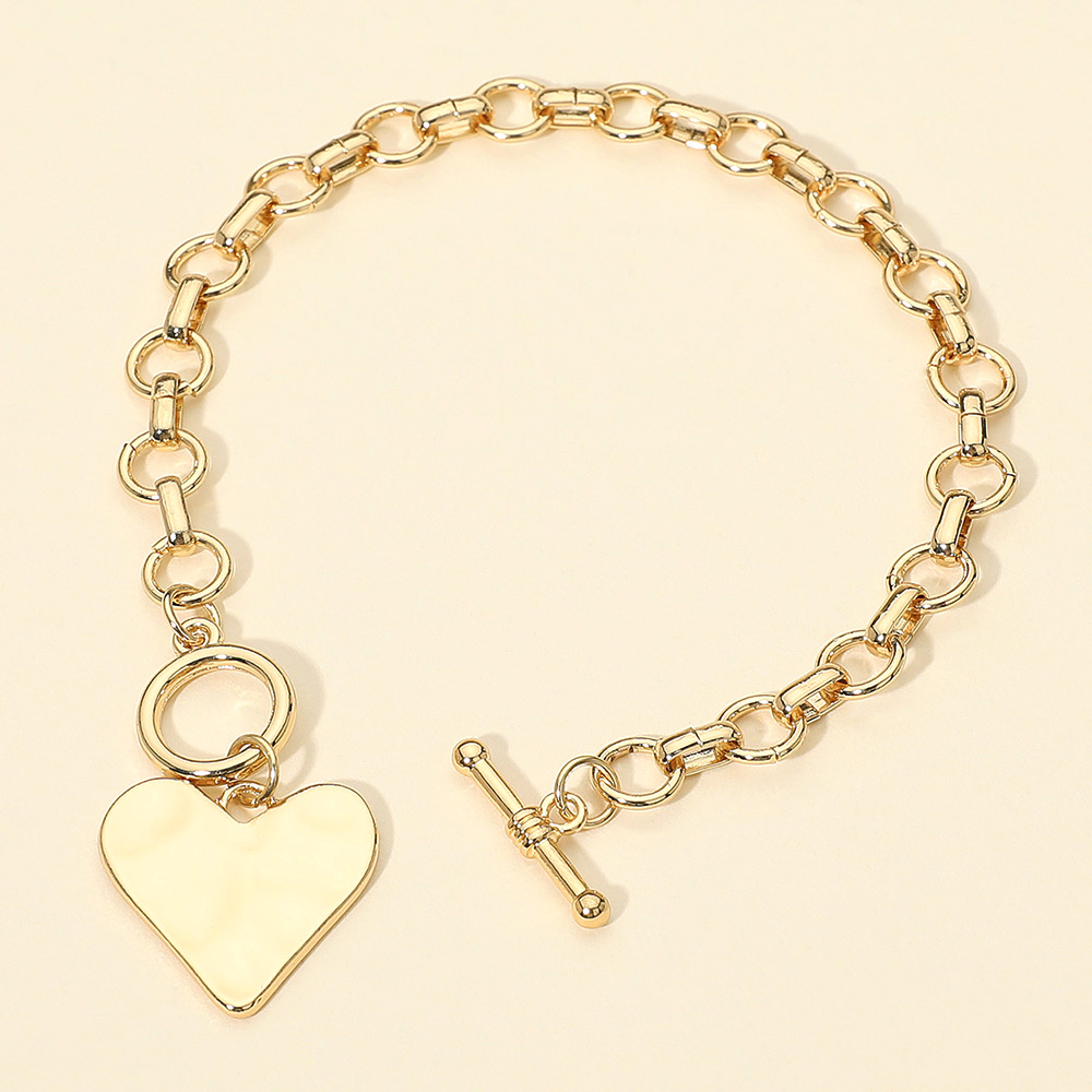 Hammered Metal Heart Charm Chain Link Toggle Bracelet