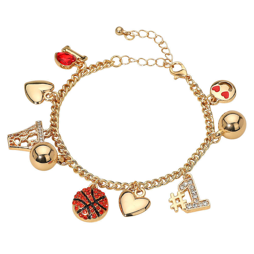 Heart Smile Number One Basketball Charm Station Bracelet Heart Smile Number One Basketball Charm Station Bracelet