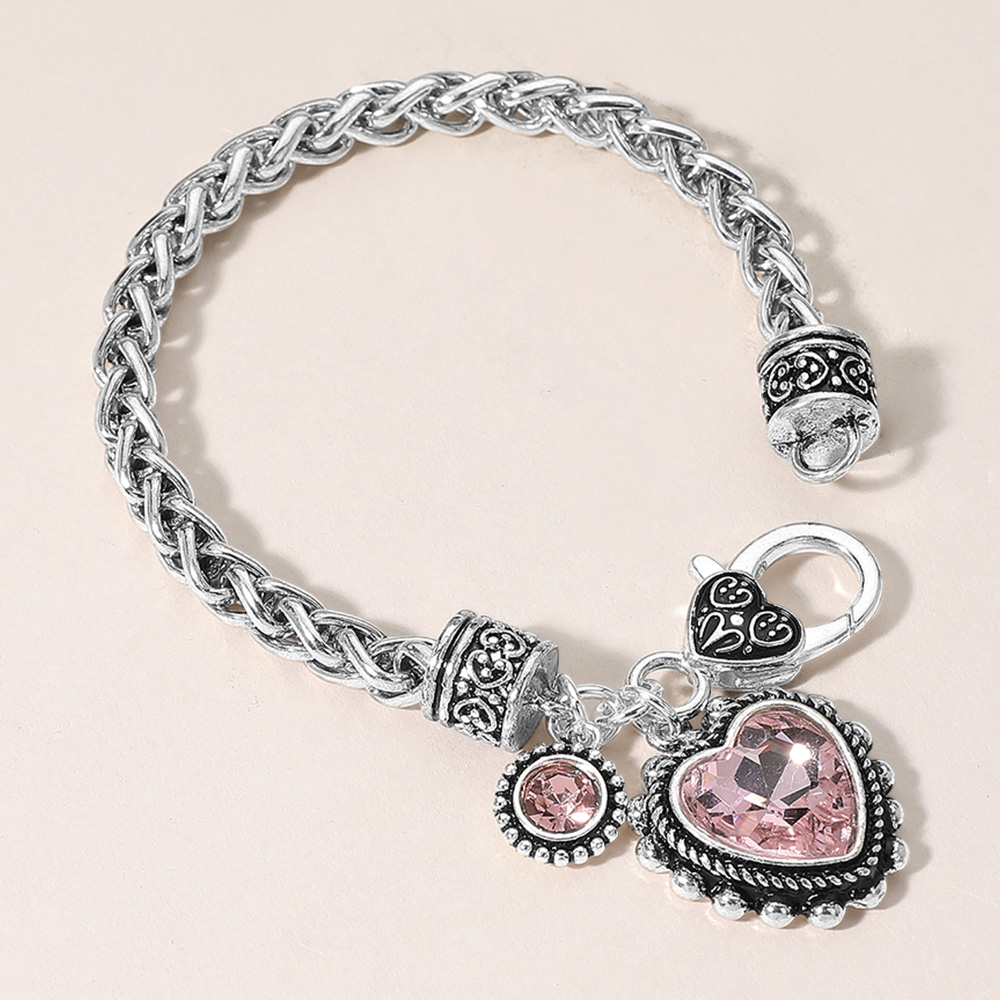 • This bracelet showcases a braided chain adorned with a heart charm and sparkling accents. Intricate details and a secure clasp add elegance and durability, making it a perfect accessory for everyday charm or special occasions.