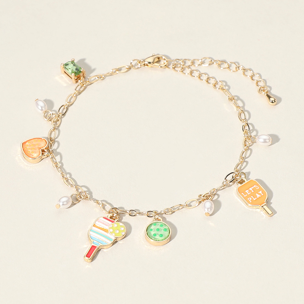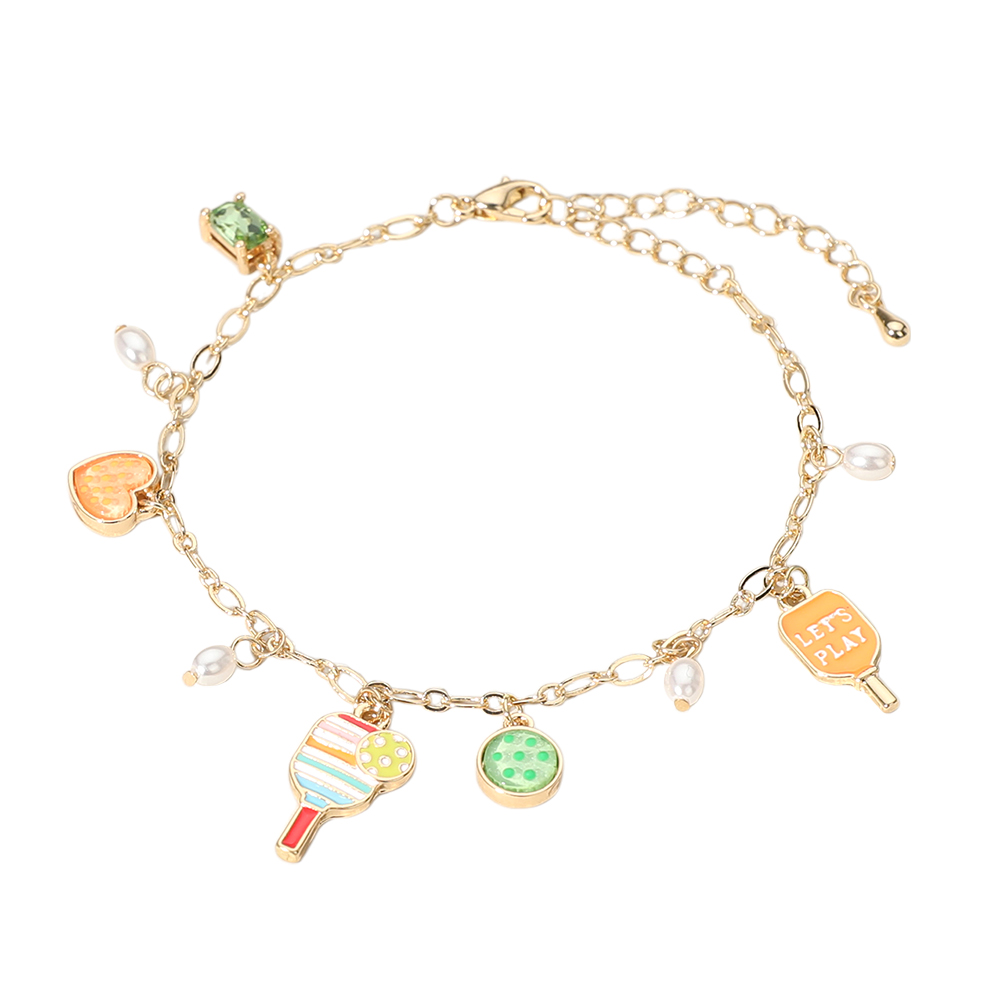 Lets Play Message Enamel Pickleball Pearl Charm Station Bracelet