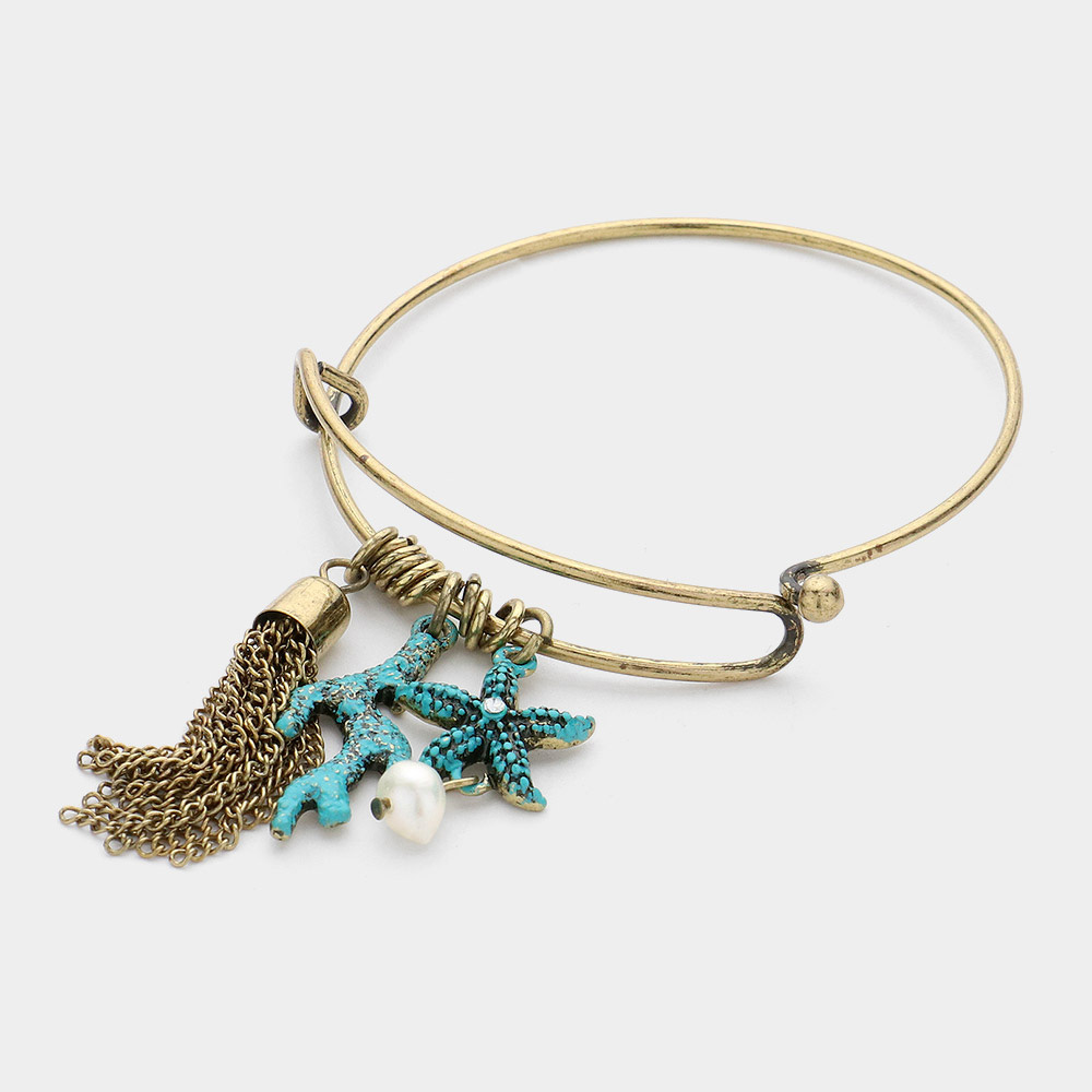 Metal Chain Tassel & Starfish Pearl Coral Charm Hook Bracelet