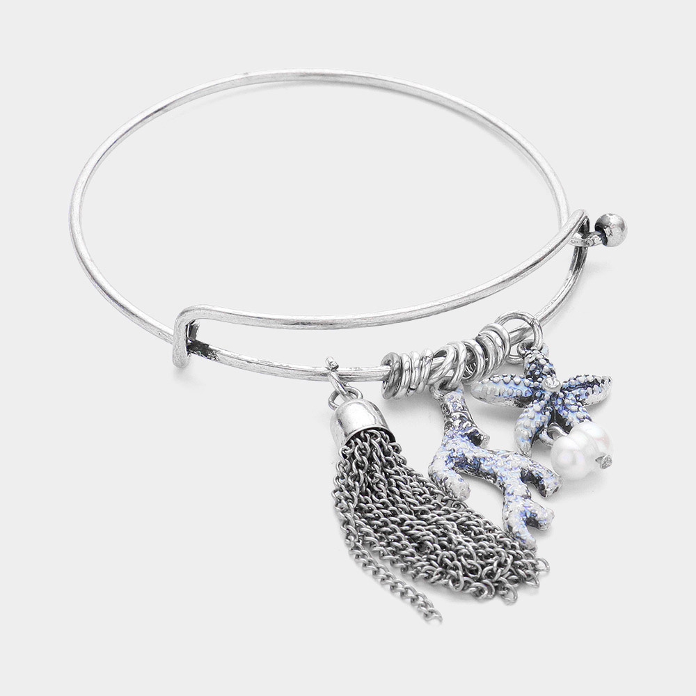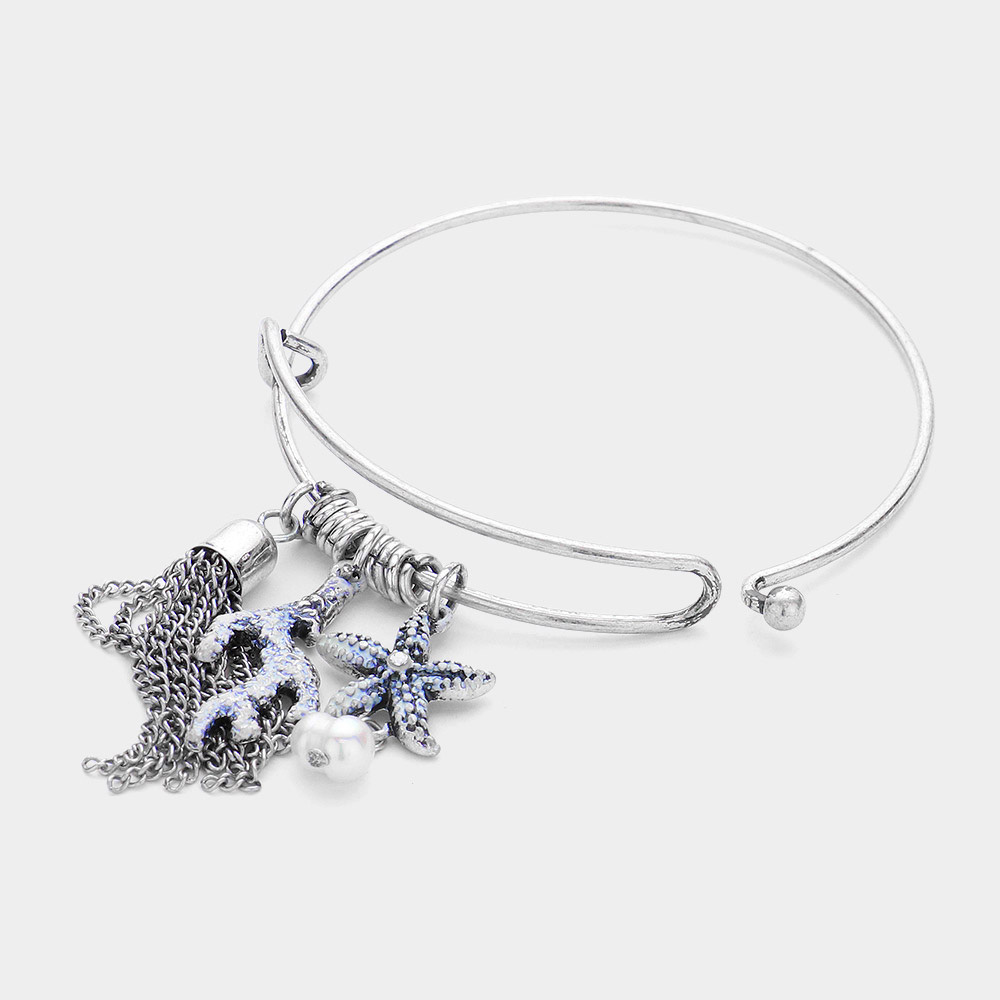 Metal Chain Tassel & Starfish Pearl Coral Charm Hook Bracelet