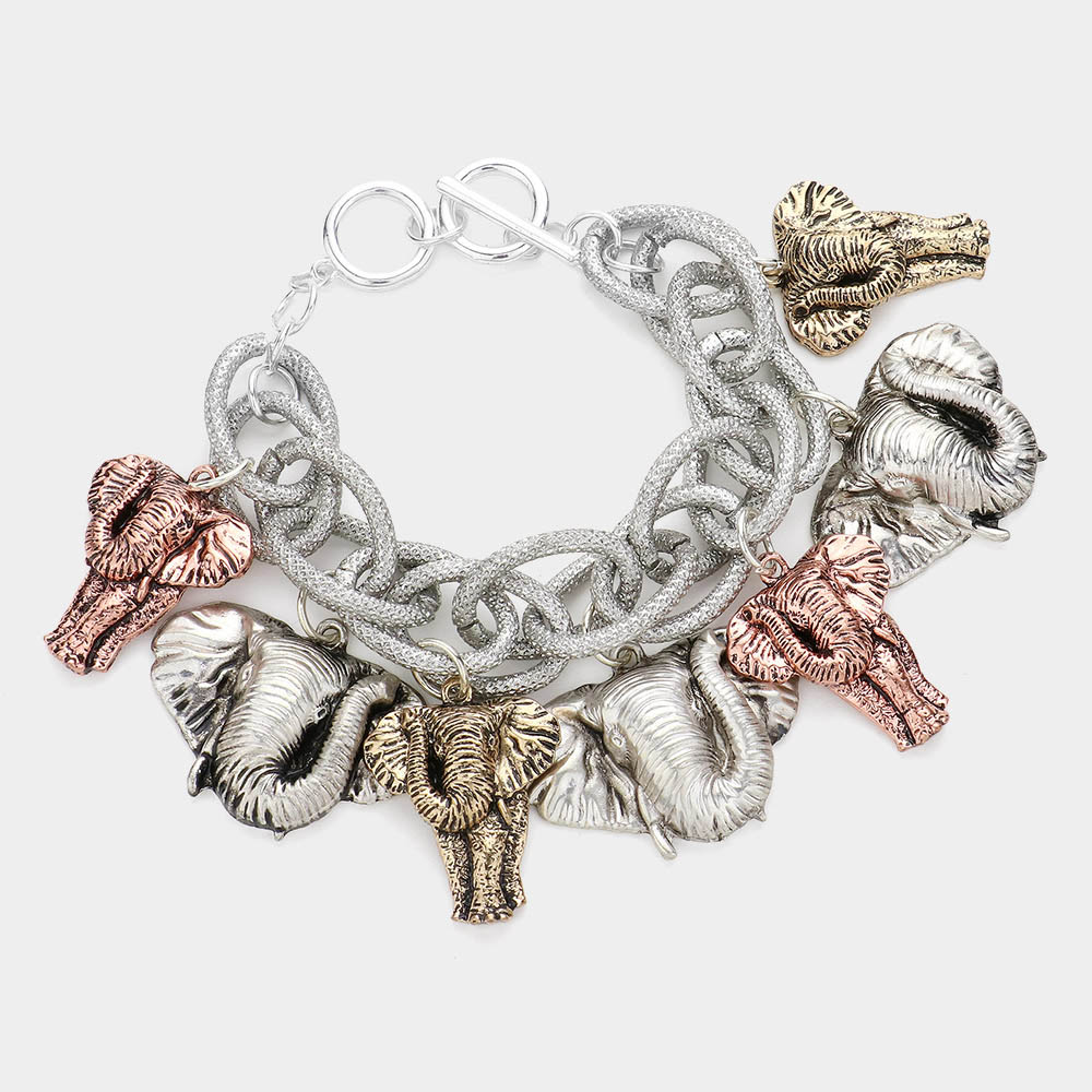 Metal Elephant Charm Toggle Bracelet