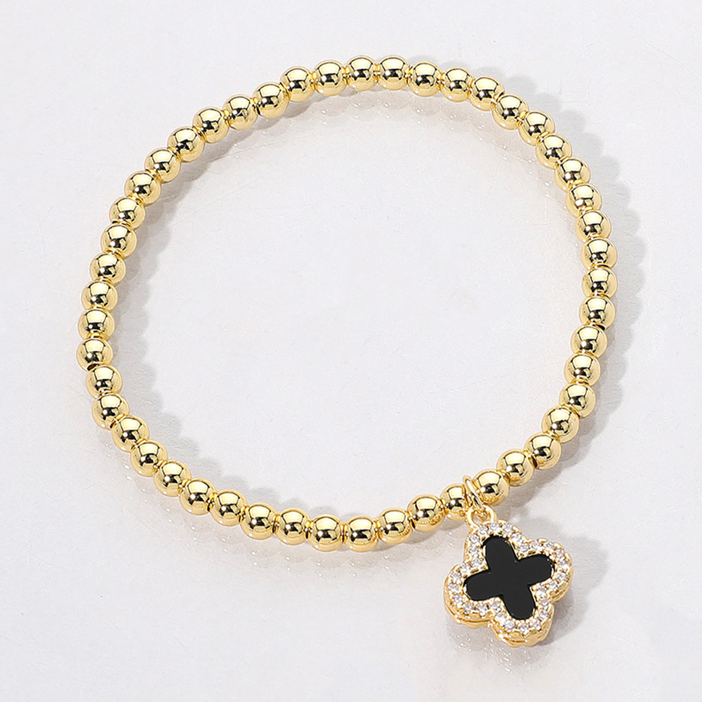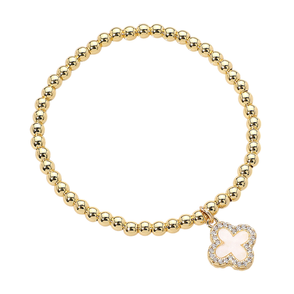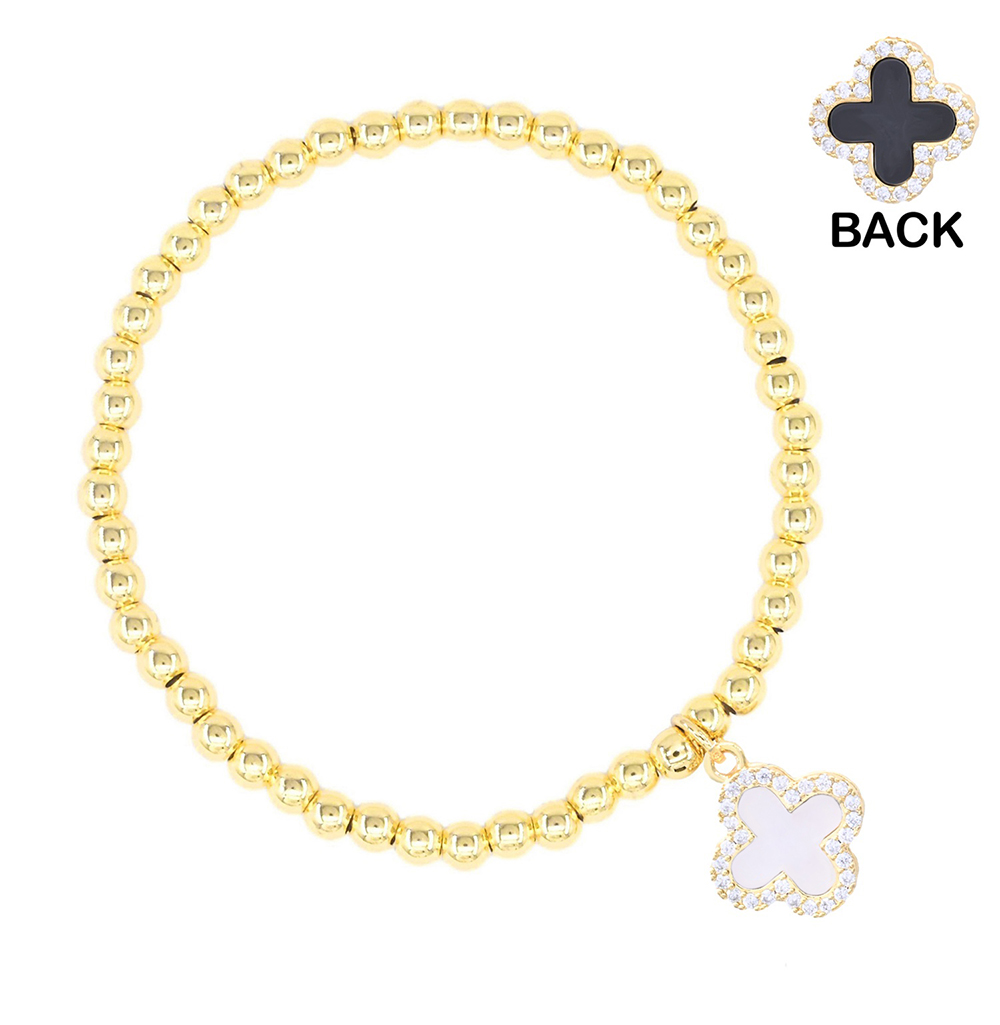 Reversible Stainless Steel Quatrefoil Charm Beaded Stretch Bracelet