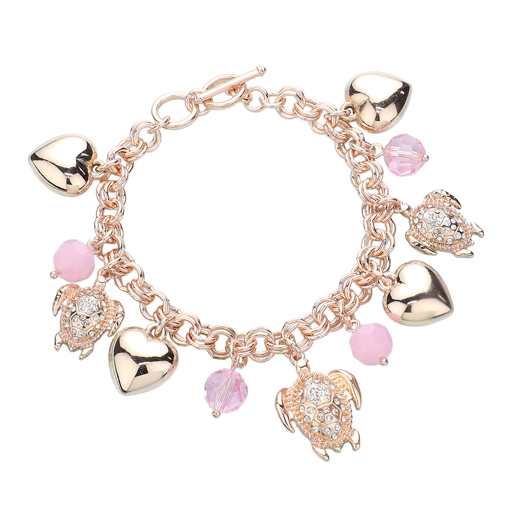 Details • Size : 1.25" H, 7.5" + 0.5" L • Toggle Closure • Elegant charm bracelet featuring angel, heart, and bead details with sparkling crystal accents. A graceful accessory perfect for special occasions or as a thoughtful gift. • Lead and Nickel Compliant