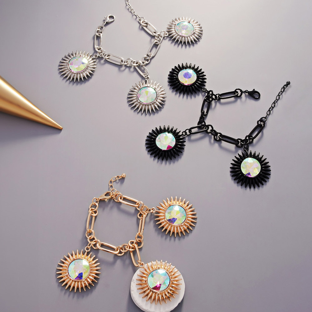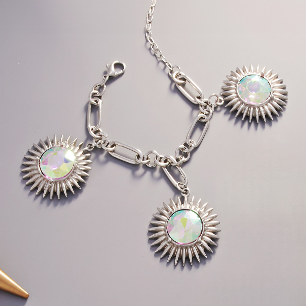 Round Crystal Stone Cluster Charm Bracelet