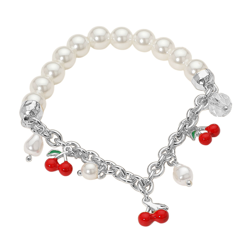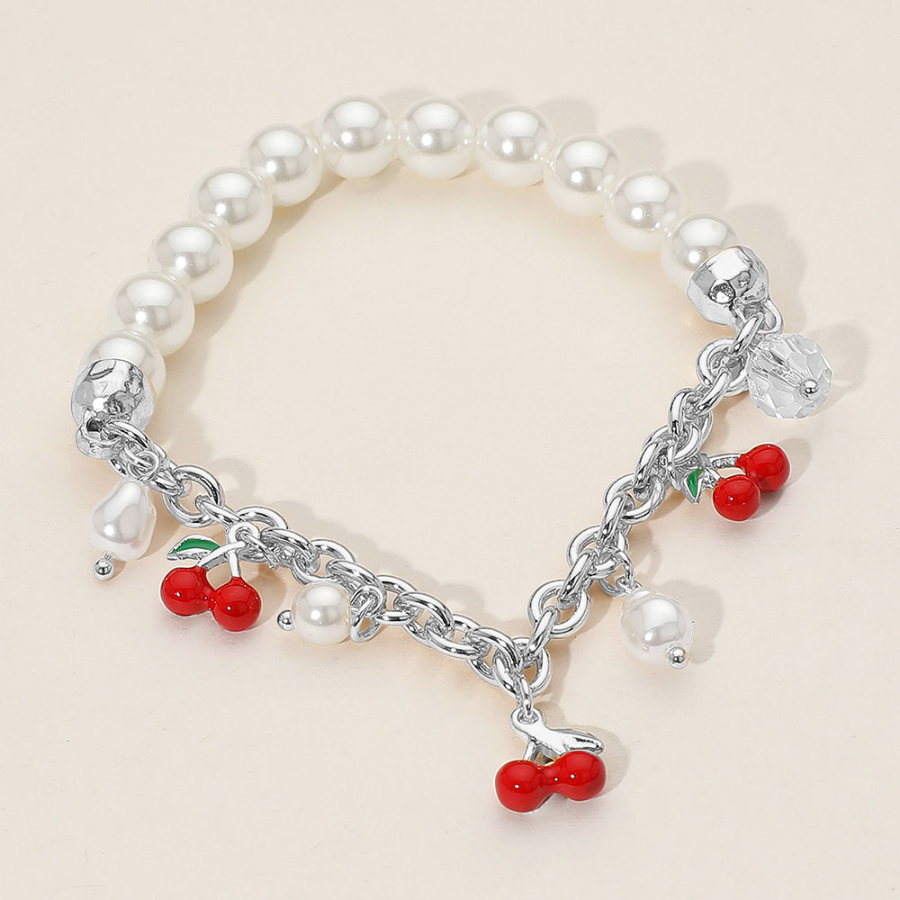 SECET BOX_Cherry Charm Pearl Beaded Stretch Bracelet