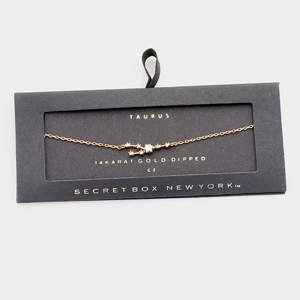 Secret Box _ 14K Gold CZ Taurus Zodiac Sign Charm Bracelet
