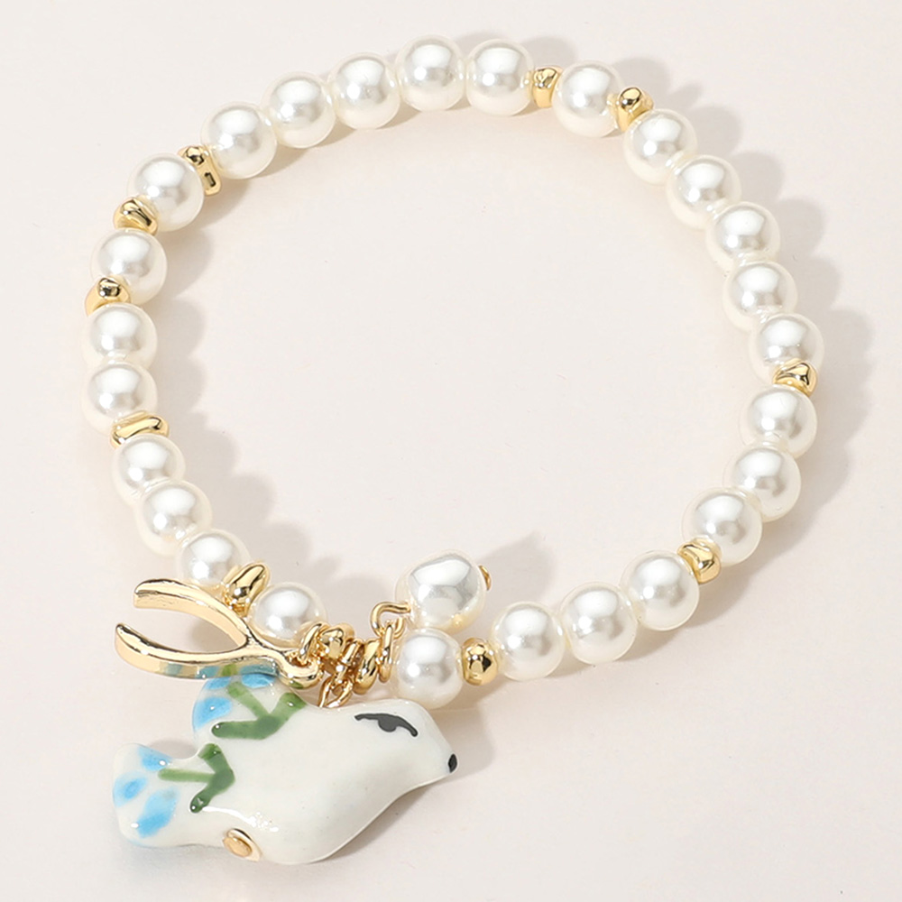 Details • Size : 1" H • Stretchable • Elegant stretch bracelet with polished beads and a detailed bird charm. A delicate accessory that adds a peaceful, nature-inspired touch to casual or dressy outfits, perfect for everyday charm. • Lead and Nickel Compliant