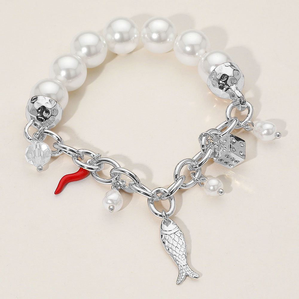 SECRET BOX_Fish Dice Chili Charm Pearl Beaded Stretch Bracelet