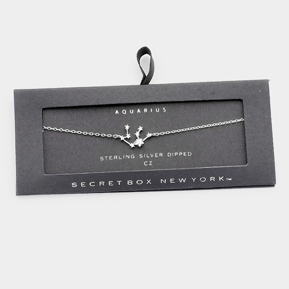 SECRET BOX_Sterling Silver Dipped CZ Aquarius Zodiac Sign Pendant Necklace