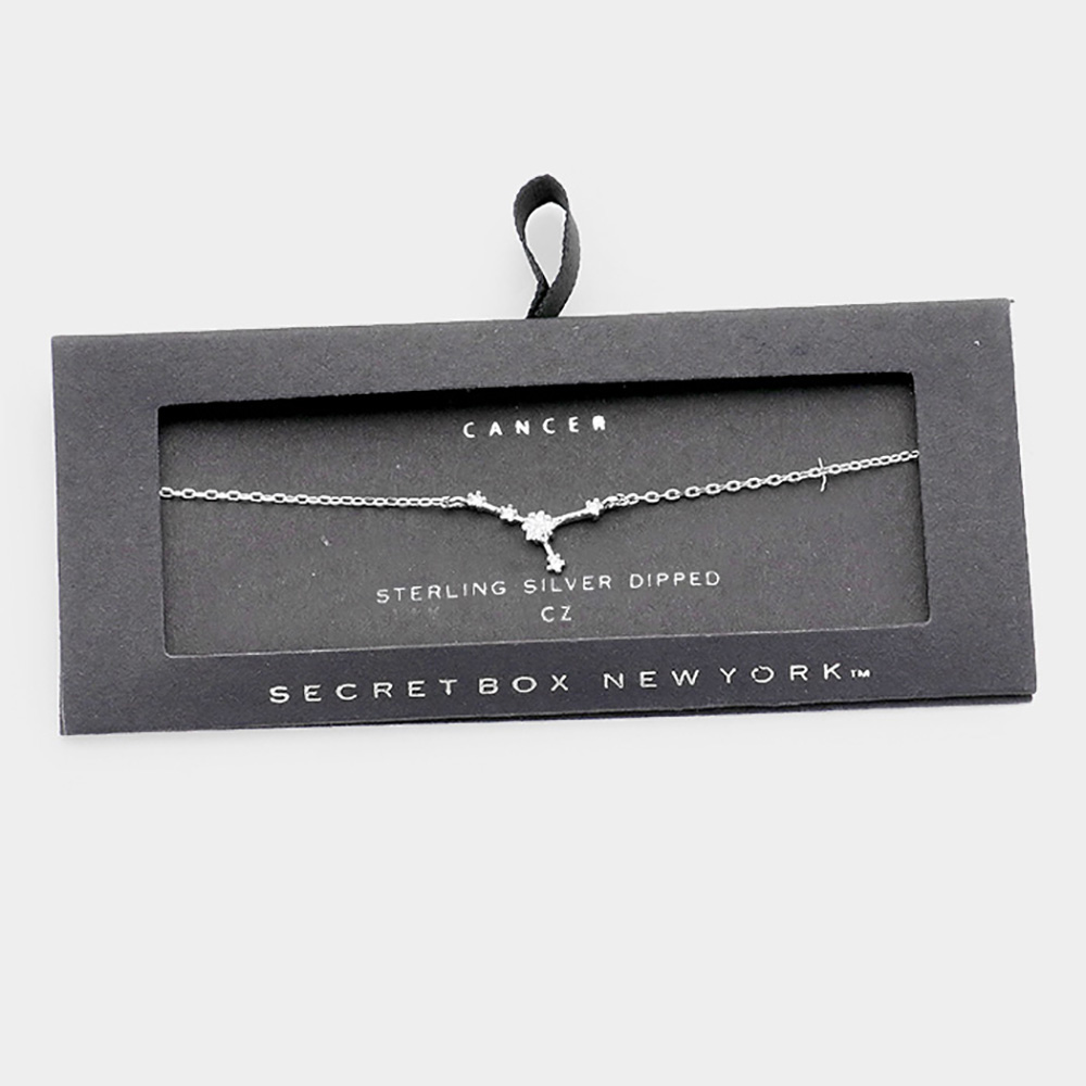 SECRET BOX_Sterling Silver Dipped CZ Cancer Zodiac Sign Pendant Necklace