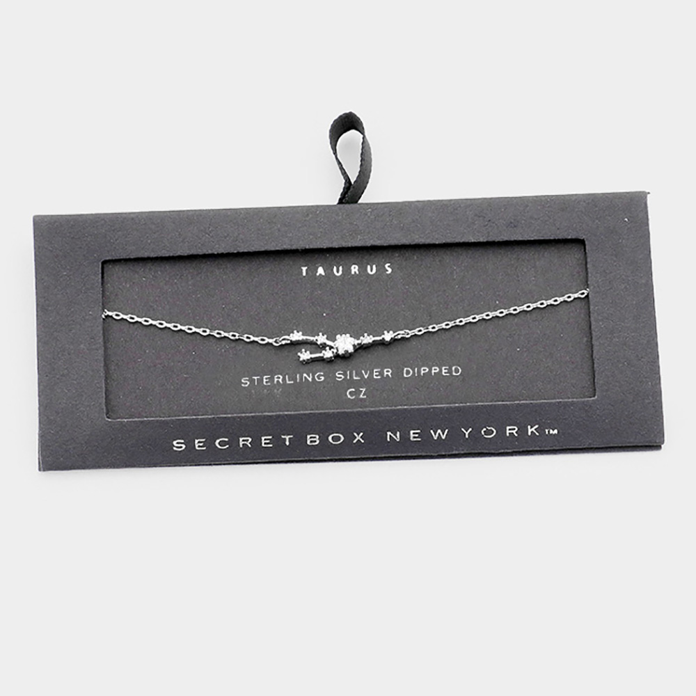 Secret Box _ Sterling Silver Dipped CZ Taurus Zodiac Sign Charm Bracelet