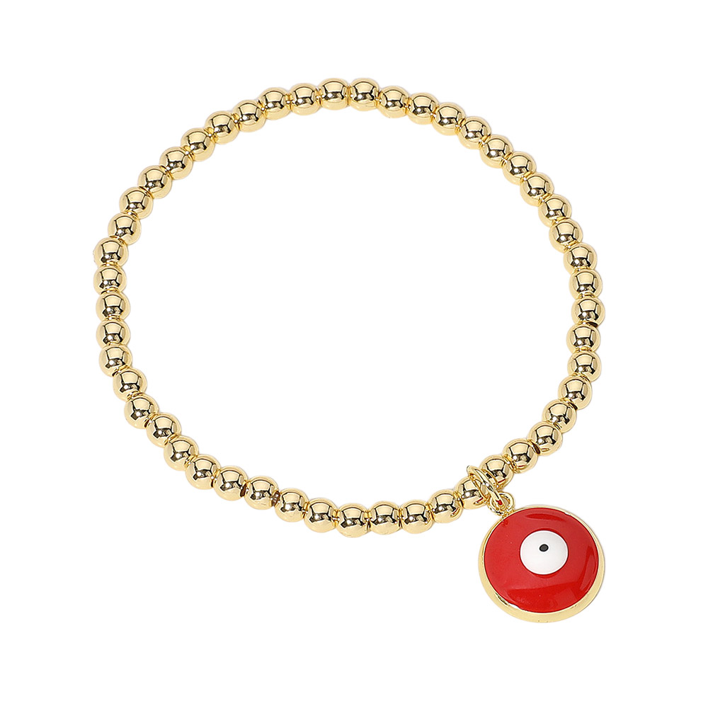 • Add symbolic style to your accessories with this gold beaded bracelet featuring a striking red evil eye charm. Designed for everyday wear, it blends protection and elegance, making it perfect for stacking or gifting. A timeless piece that offers both fashion appeal and a meaningful touch to your look.