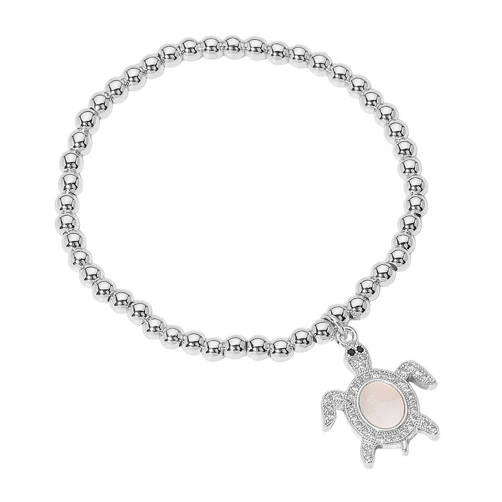 Details • Size : 0.2" H • Charm Size : 0.75" X 0.8" • Stretchable • Stretch bracelet with smooth round beads and a detailed turtle charm. A charming accessory perfect for sea life lovers and beach-inspired styles. • Lead and Nickel Compliant • Stainless Steel
