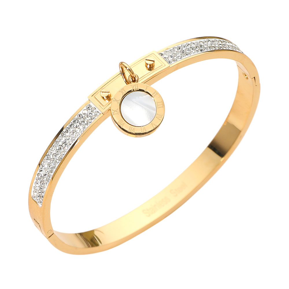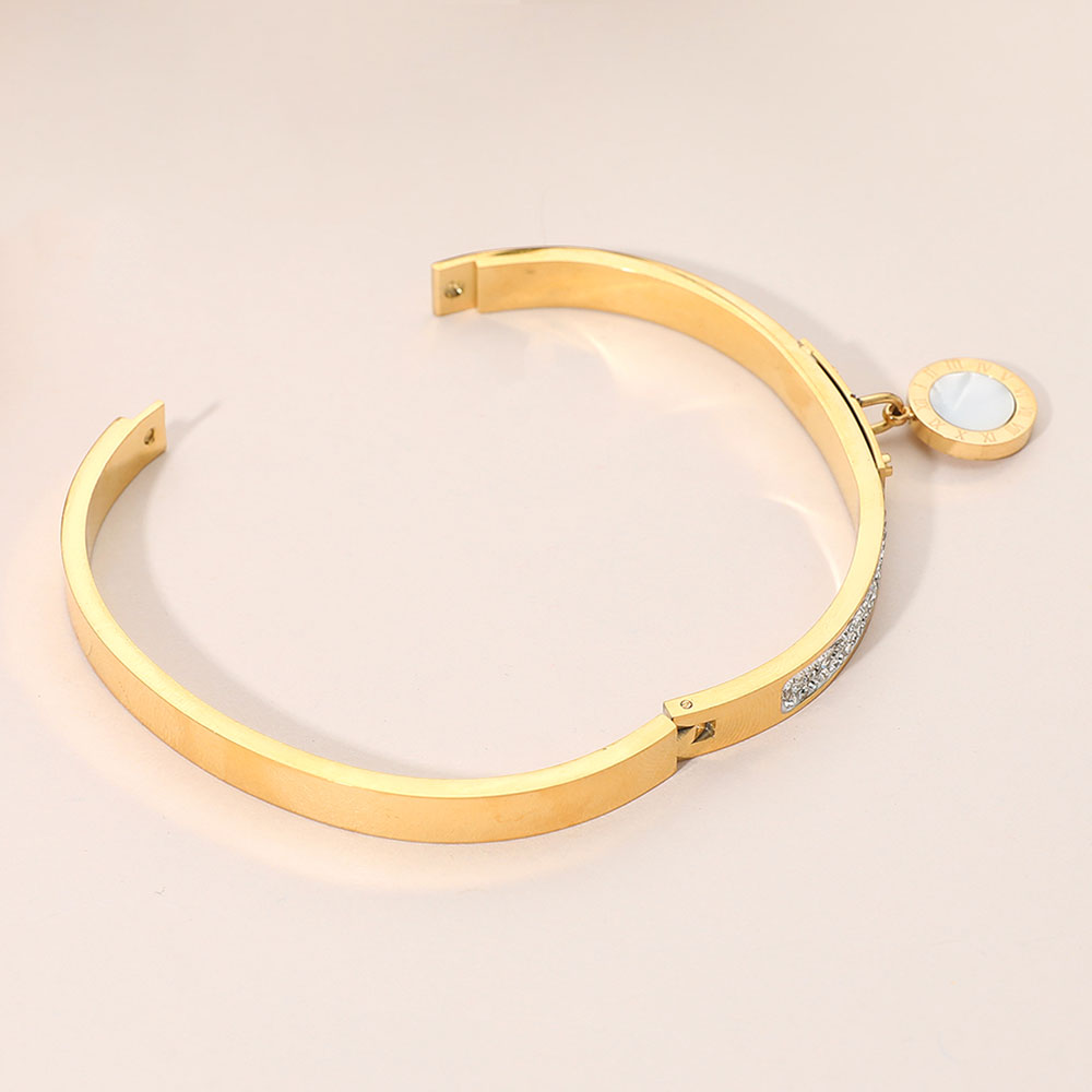 Stainless Steel Round Mother of Pearl Charm Accent CZ Stone Paved Hinged Bangle Bracelet Stainless Steel Round Mother of Pearl Charm Accent CZ Stone Paved Hinged Bangle Bracelet Stainless Steel Round Mother of Pearl Charm Accent CZ Stone Paved Hinged Bangle Bracelet