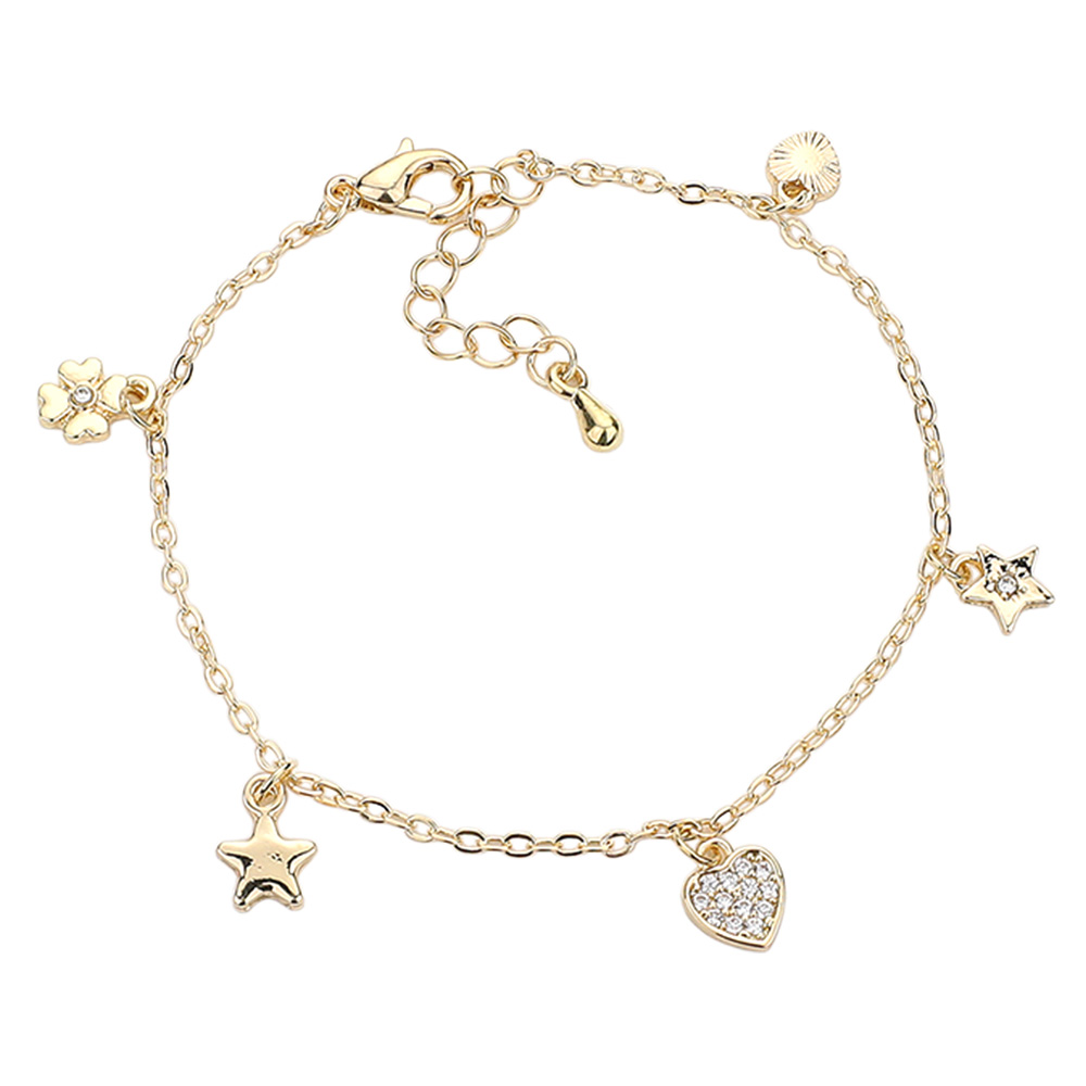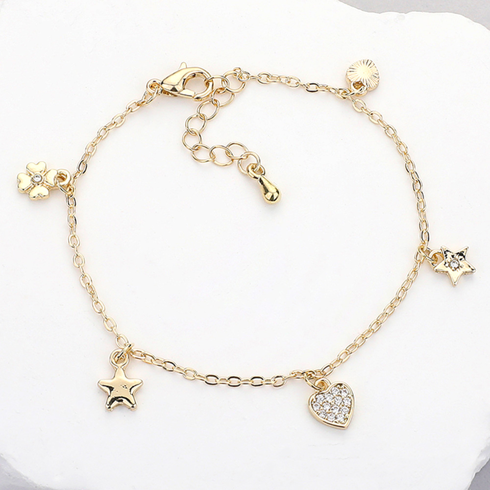 Stone Paved Clover Heart Star Charm Station Bracelet