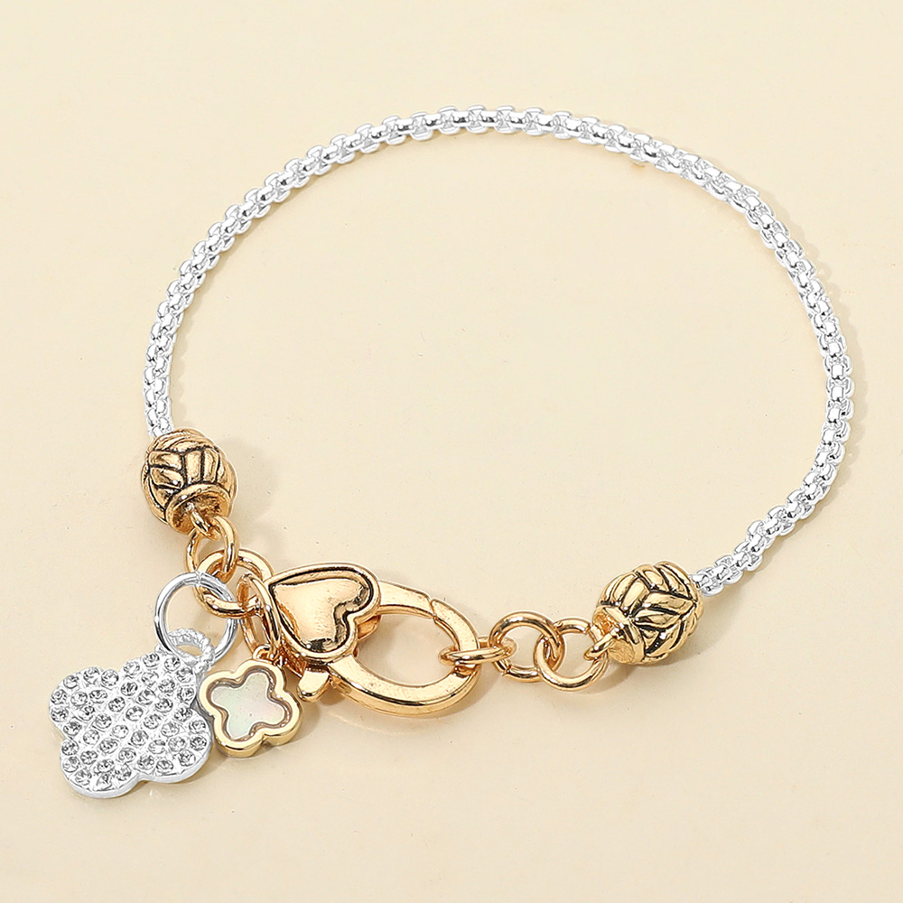 Details • Size : 7.5" + 0.5" L • Charm Size : 0.6" X 0.7" • Lobster Clasp Closure • Delicate box chain bracelet adorned with a sparkling quatrefoil charm, enamel quatrefoil charm. A versatile accessory that blends elegance with playfulness, perfect for layering or wearing solo. Ideal for daily wear, special occasions, or as a thoughtful gift. • Lead and Nickel Compliant