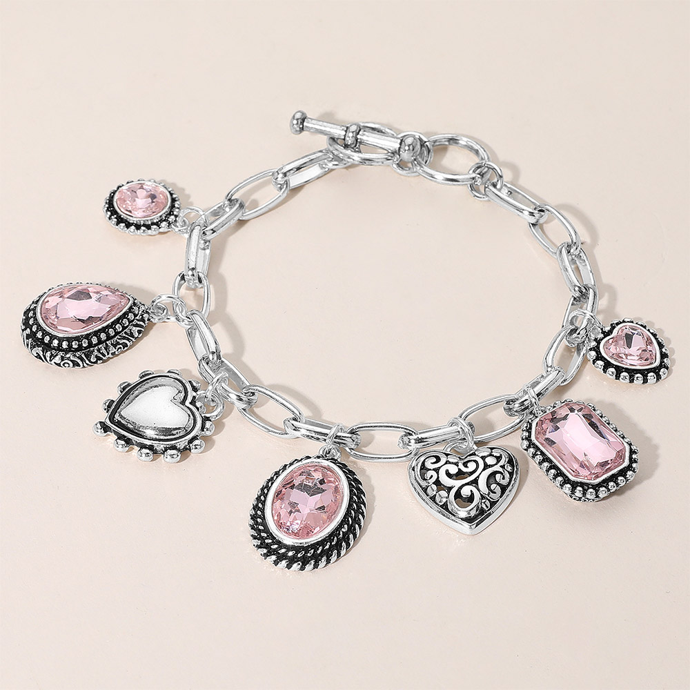 • Elegant bracelet featuring heart, oval, and teardrop-shaped charms with antique-style detailing. Adds a unique vintage-inspired touch to your jewelry collection, ideal for casual and formal outfits alike.
