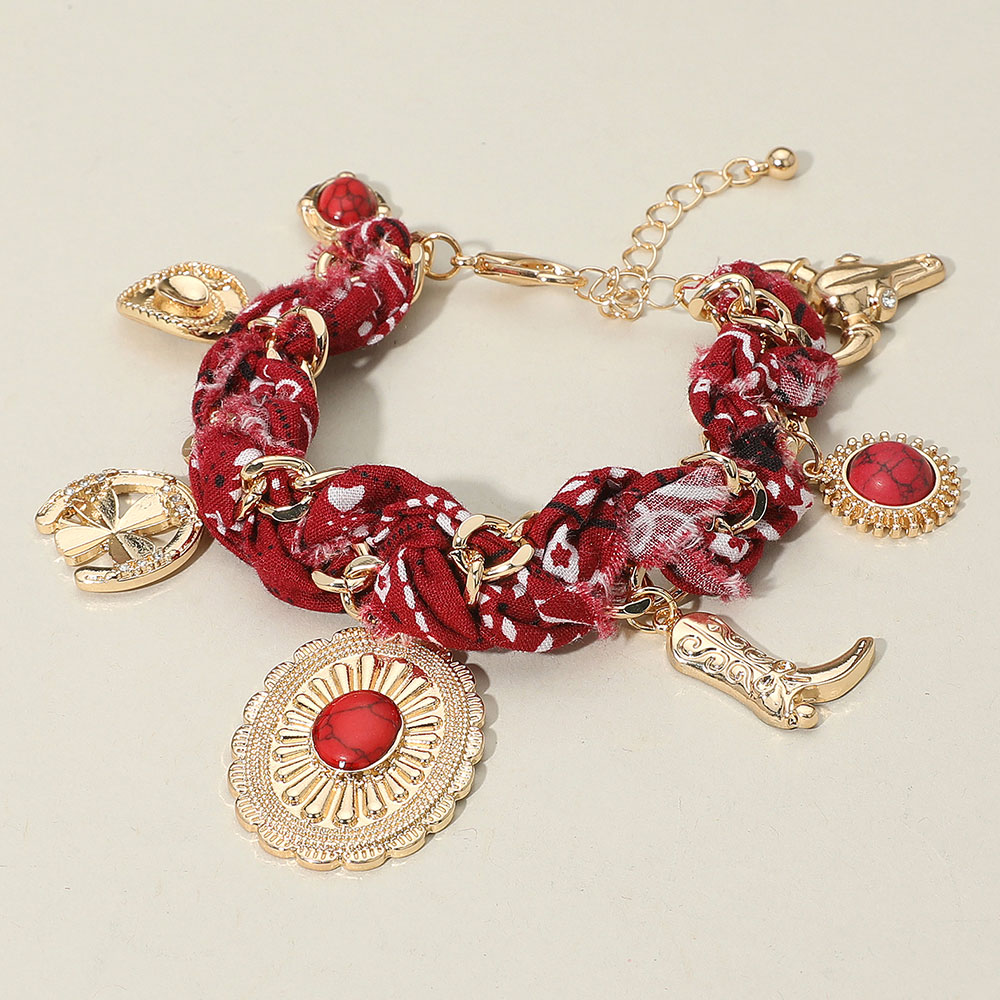 Western Cowboy Hat Boot Charm Station Fabric Chain Bracelet