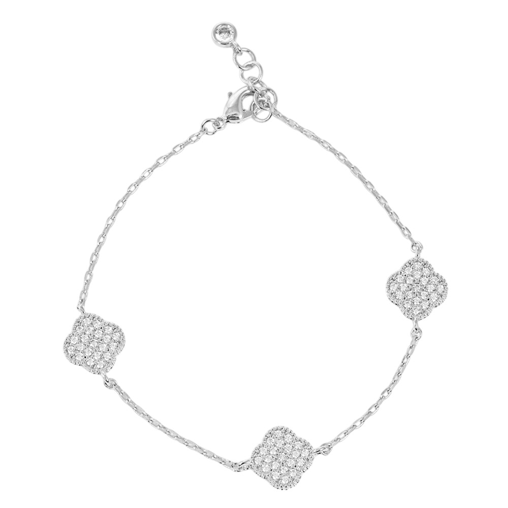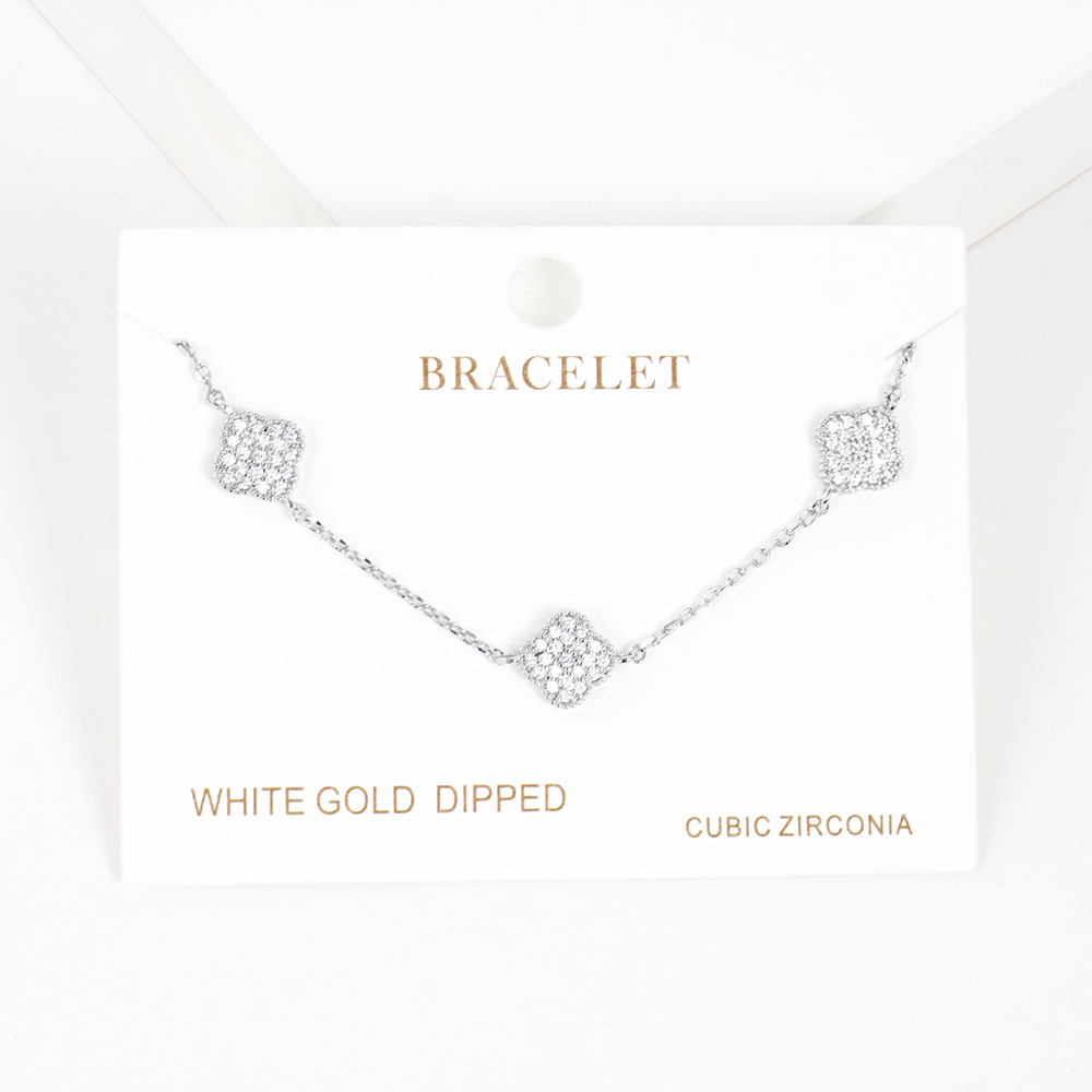 White Gold Dipped CZ Triple Quatrefoil Charm Bracelet