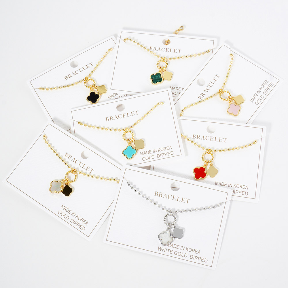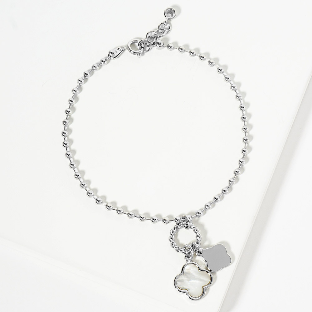 Details • Size : 7" + 0.5" L • Charm Size : 0.4" X 1" • Lobster Clasp Closure • Add a chic touch to your wrist with this elegant beaded chain bracelet featuring dual charms and a polished finish. The adjustable clasp ensures a comfortable fit, making it a versatile accessory for everyday wear or special occasions. A timeless blend of charm and style. • Lead and Nickel Compliant • Made In Korea • Gold Dipped