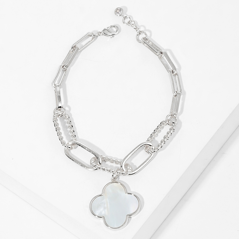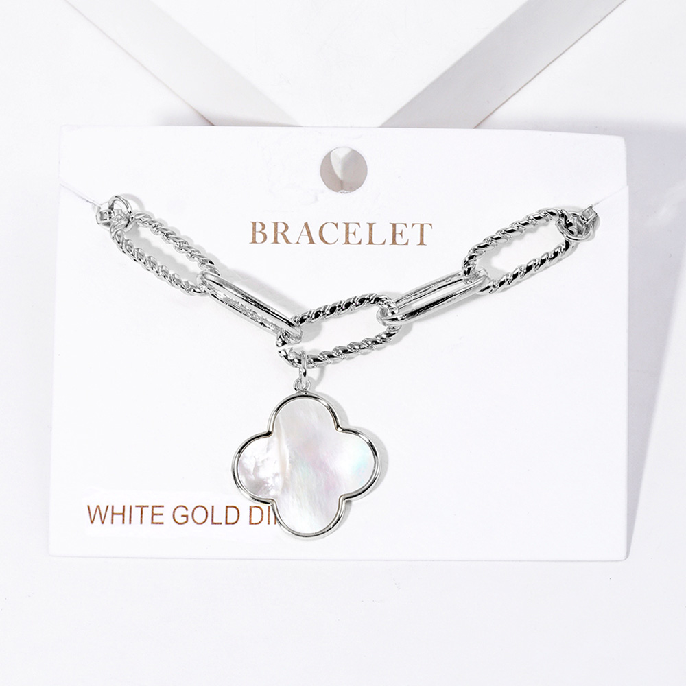 Gold Dipped Mother of Pearl Quatrefoil Charm Bracelet