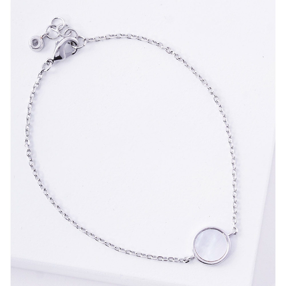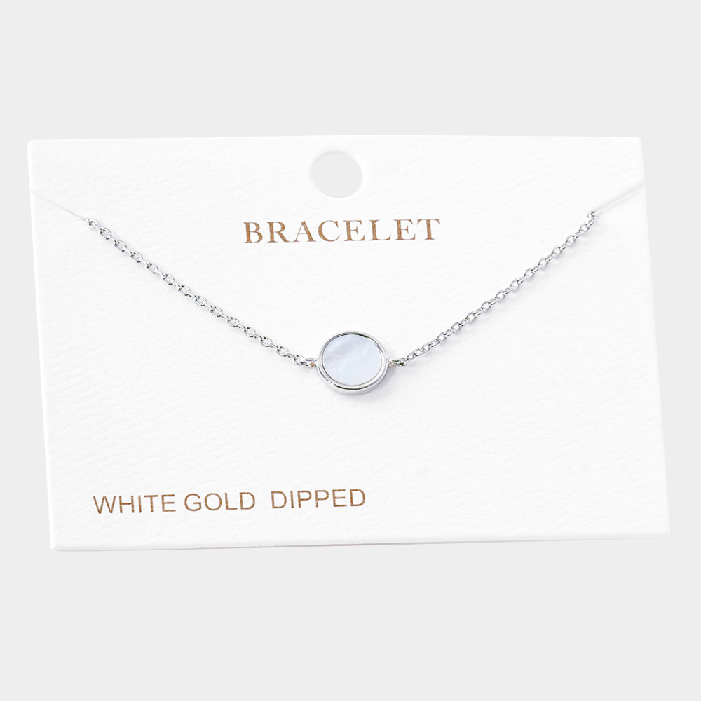 White Gold Dipped Mother of Pearl Round Charm Bracelet
