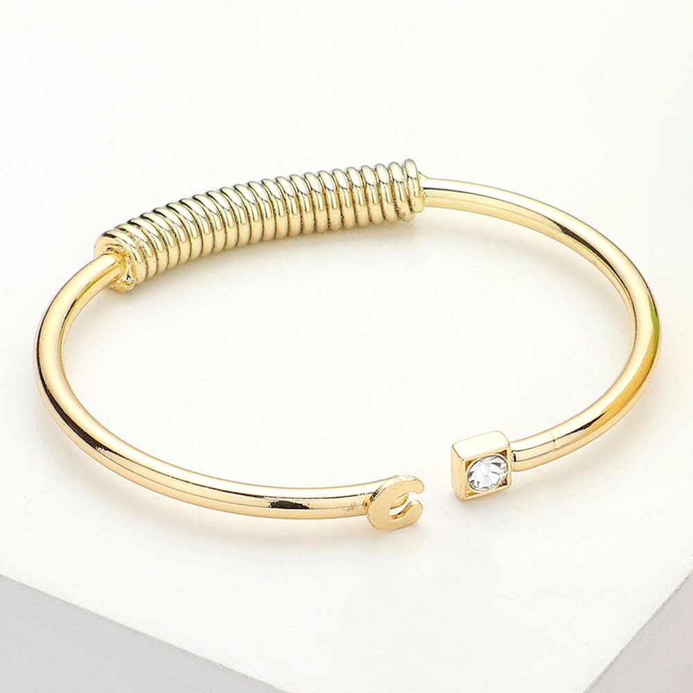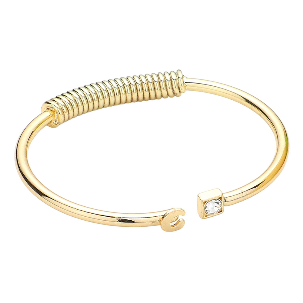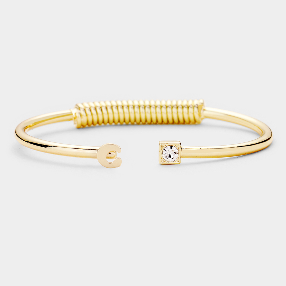 -C- Initial Monogram Brass Metal Round Stone Tip Cuff Bracelet