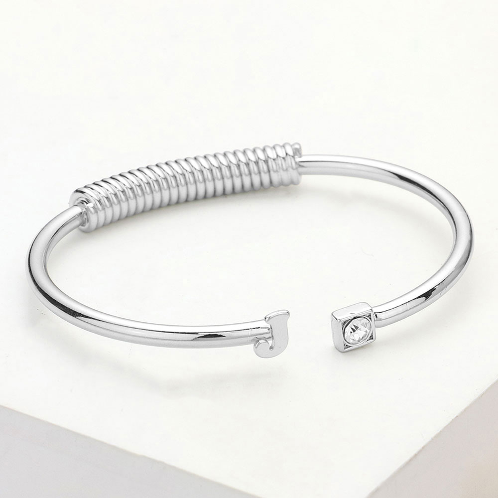 -J- Initial Monogram Brass Metal Round Stone Tip Cuff Bracelet