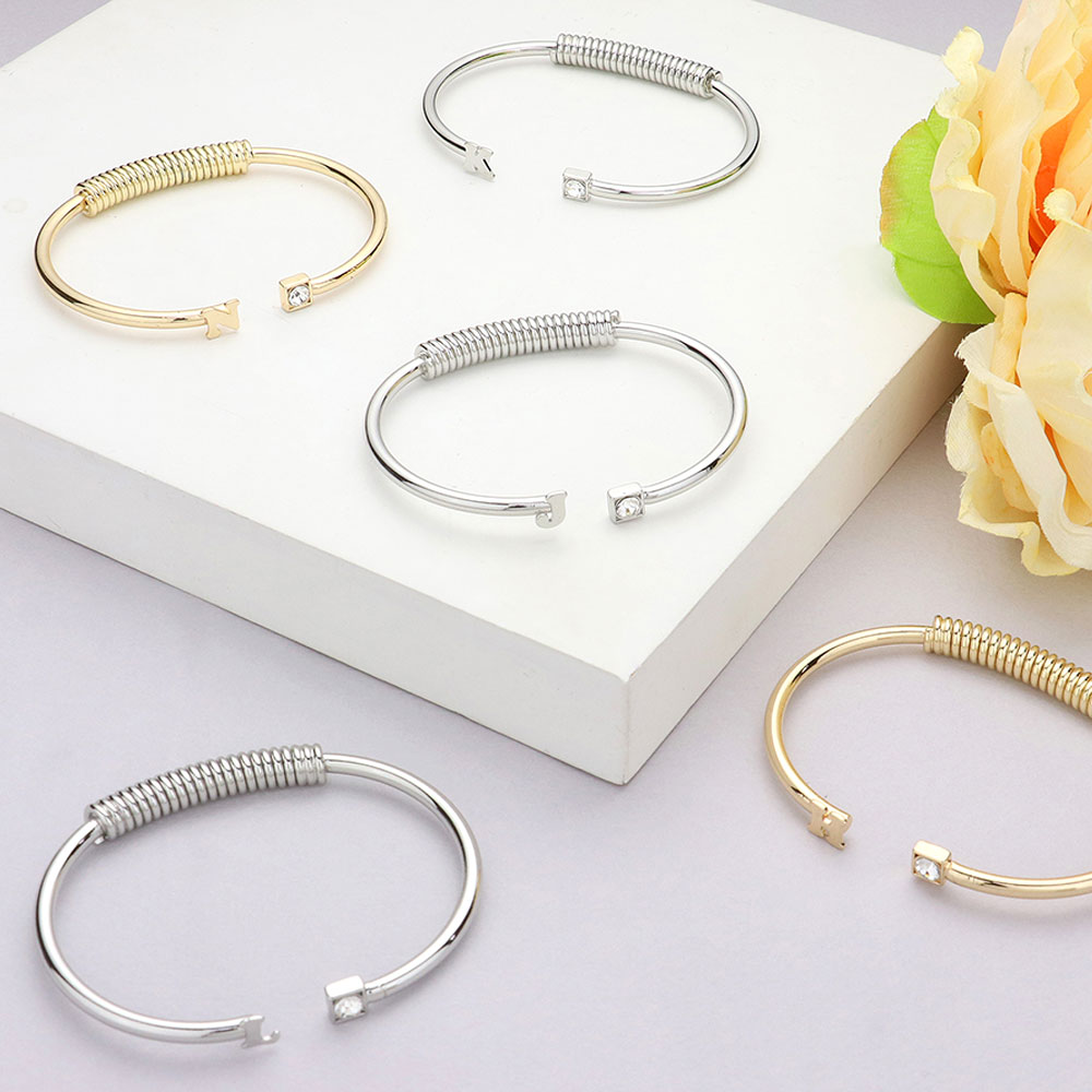 -K- Initial Monogram Brass Metal Round Stone Tip Cuff Bracelet