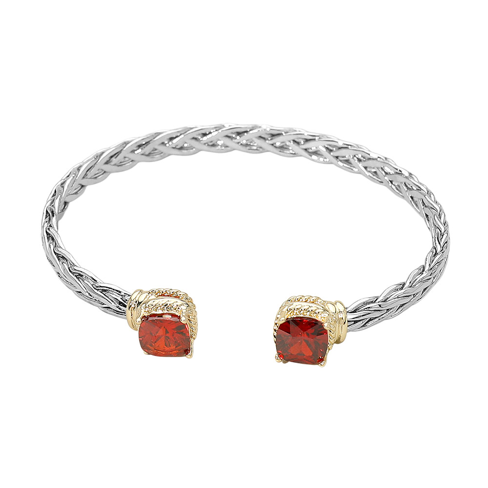 14K Gold Plated CZ Stone Tip Two Tone Braided Cuff Bracelet