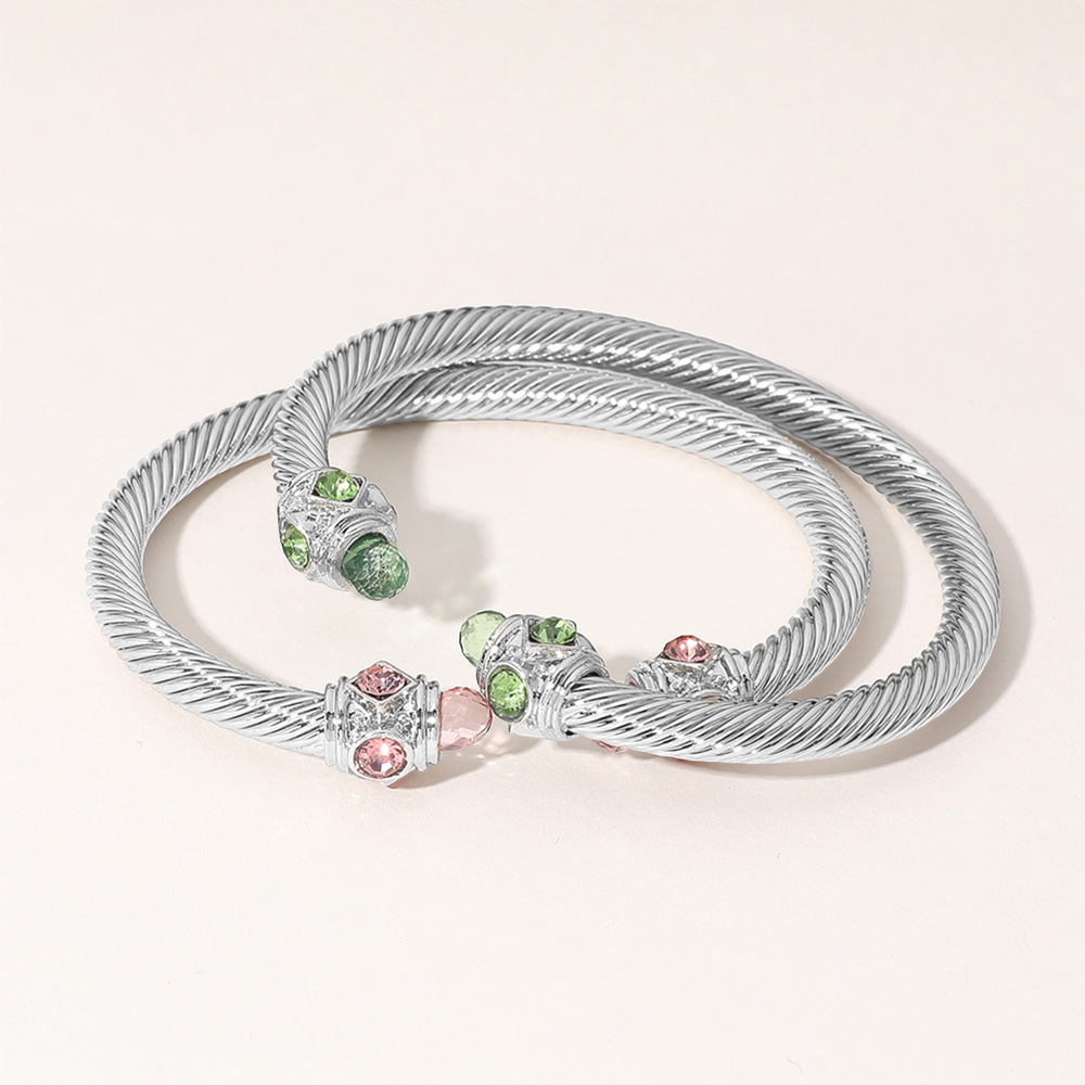 2PCS - Stone Tip Twisted Cuff Bracelet