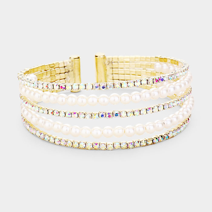 5Row Crystal Pave Pearl Cuff Evening Bracelet
