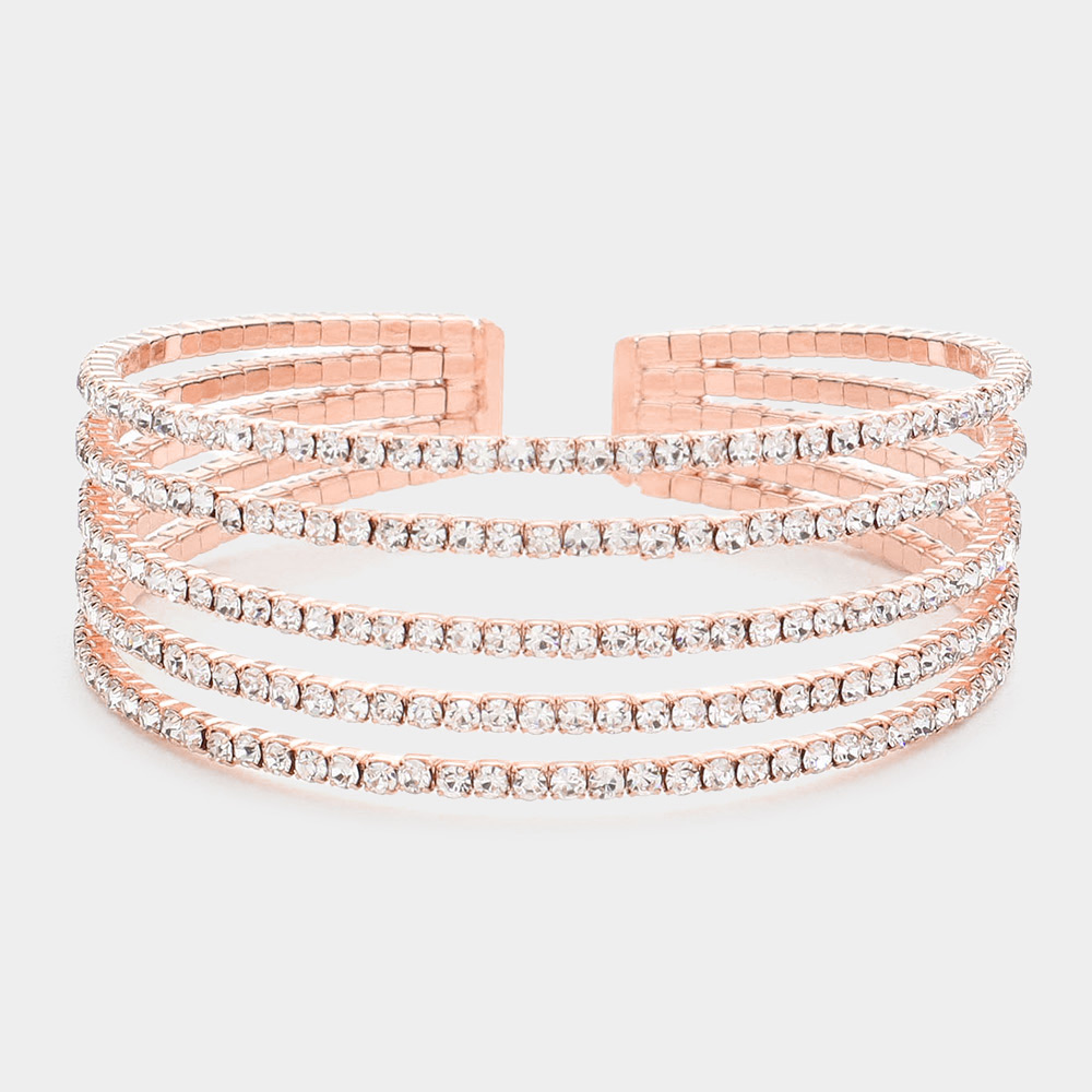 5Rows Split Layered Rhinestone Cuff Bracelet