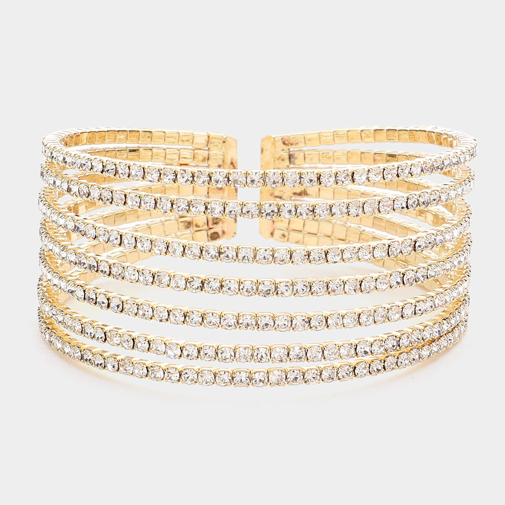 7Rows Split Layered Rhinestone Cuff Bracelet