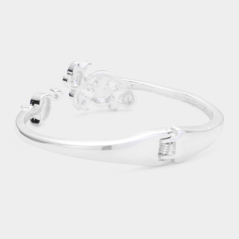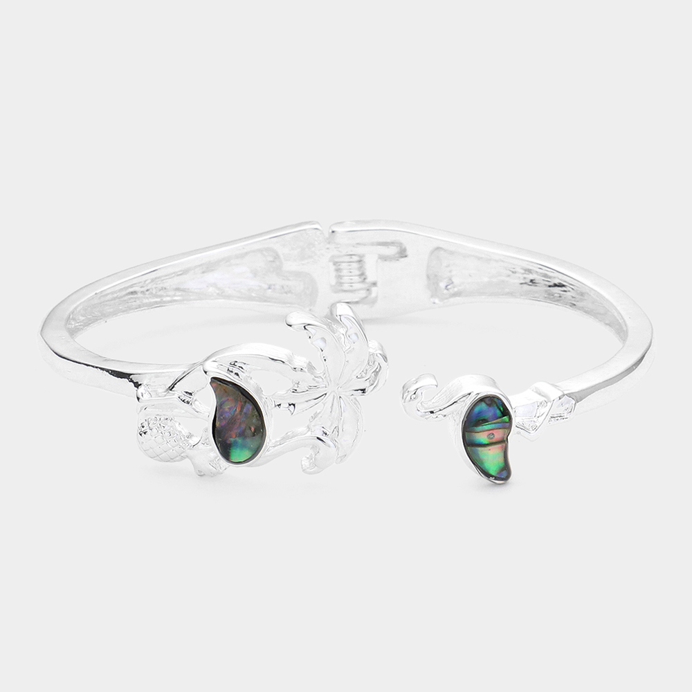 Abalone Flamingo Palm Tree Tip Hinged Cuff Bracelet