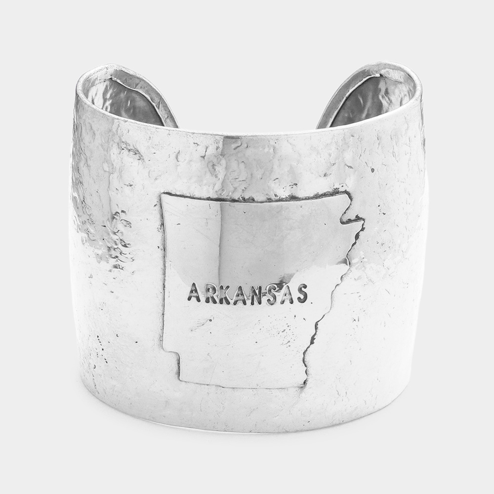 Arkansas State map Hammered Wide Metal Cuff Bracelet