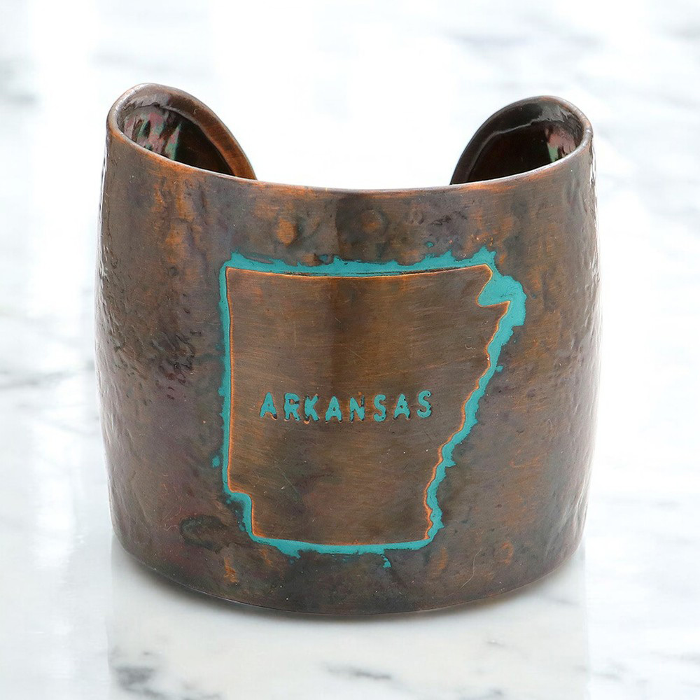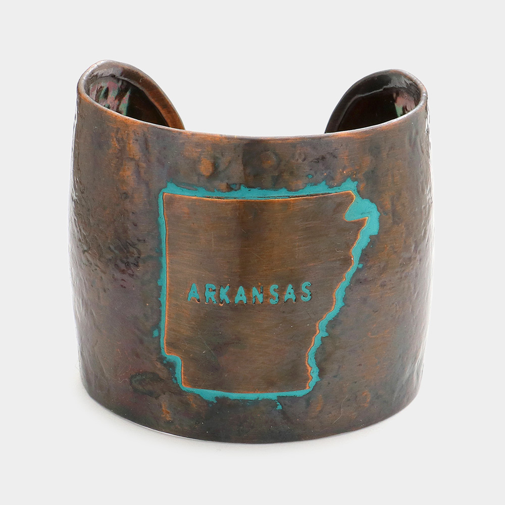 Arkansas State map Hammered Wide Metal Cuff Bracelet