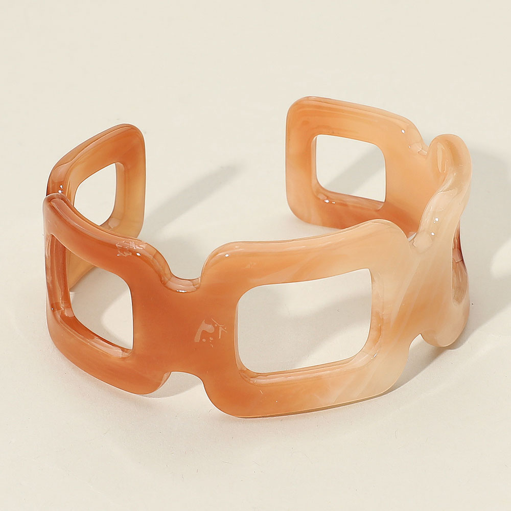 Details • Size : 1.25" H, 2.6" D • Cuff • Make a modern style statement with this geometric cutout cuff bracelet, featuring a marbled finish for added depth and texture. Perfect for pairing with casual or dressy looks, offering a bold accessory that blends contemporary design with artistic flair.