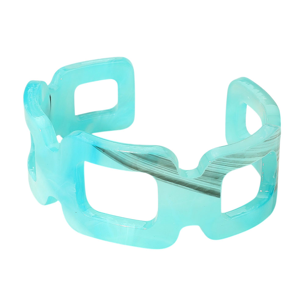 • Make a modern style statement with this geometric cutout cuff bracelet, featuring a marbled finish for added depth and texture. Perfect for pairing with casual or dressy looks, offering a bold accessory that blends contemporary design with artistic flair.