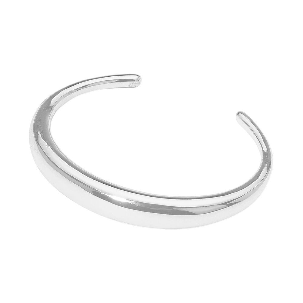 • A sleek and timeless metal cuff bracelet with a smooth polished finish. Its minimalist design makes it a versatile accessory that pairs effortlessly with casual looks or evening outfits, perfect for stacking or wearing solo.
